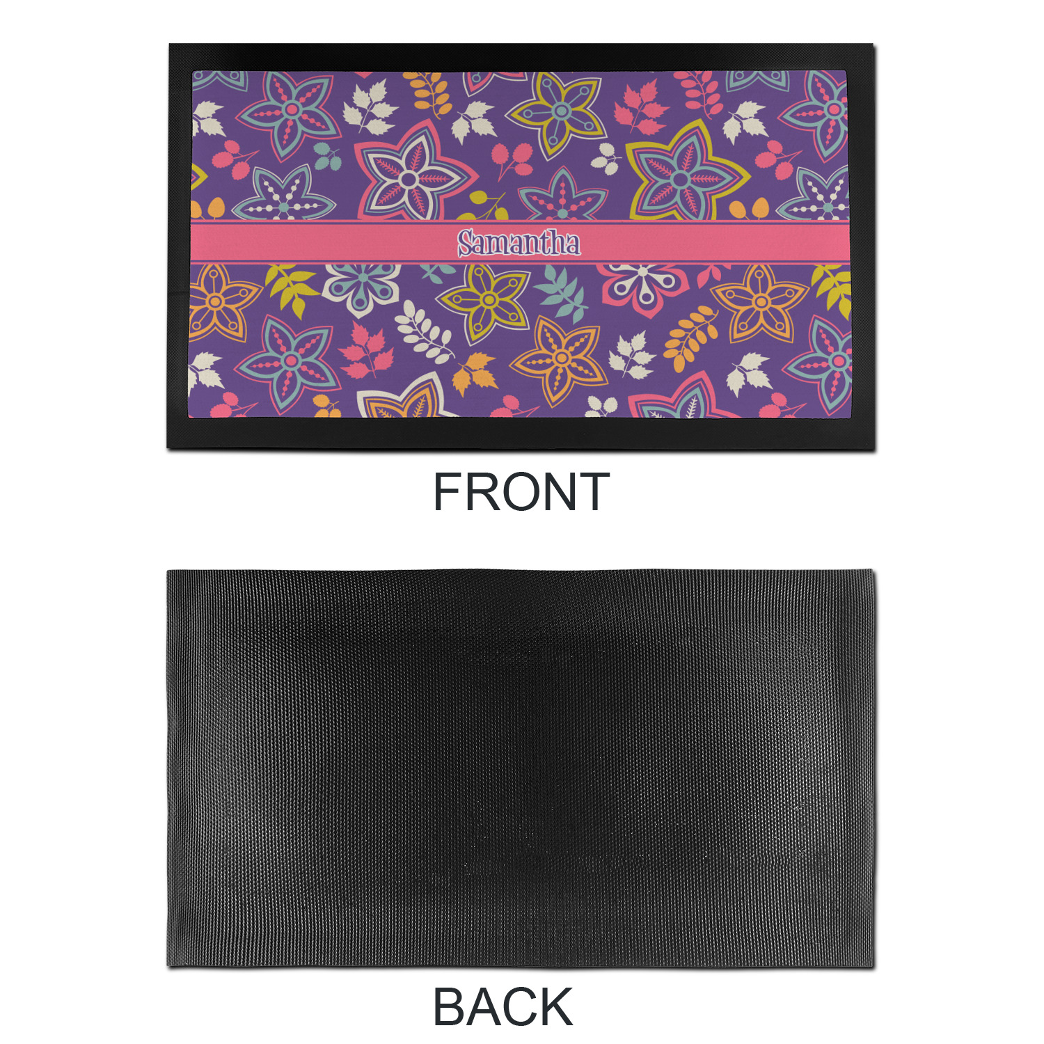 The flowers in this design are are a vibrant mix of fall colors, all on a deep plum background. The design has a classic ribbon in hot pink, the perfect place to add a name for that personal touch to pull the entire design together.