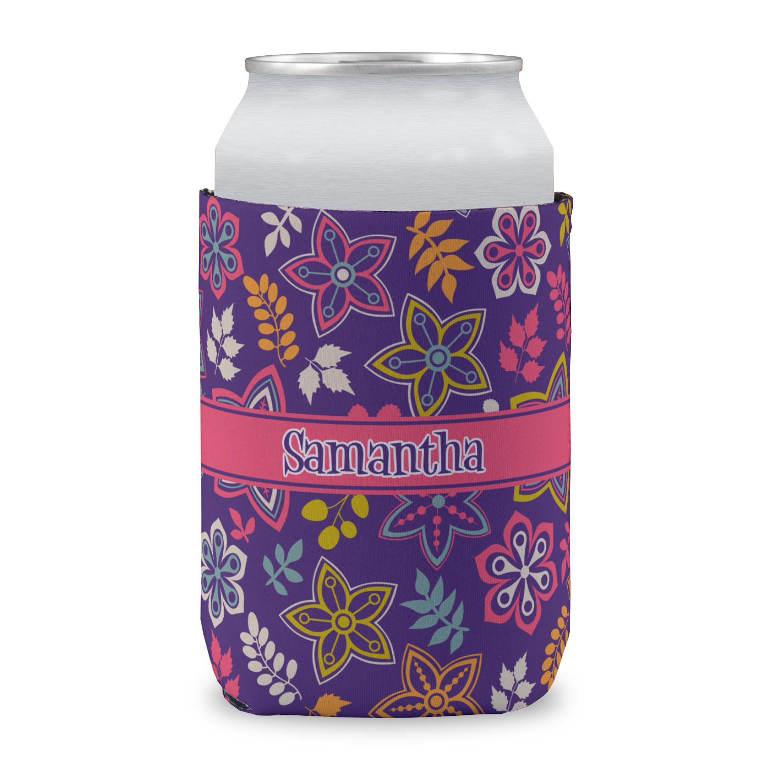 The flowers in this design are are a vibrant mix of fall colors, all on a deep plum background. The design has a classic ribbon in hot pink, the perfect place to add a name for that personal touch to pull the entire design together.