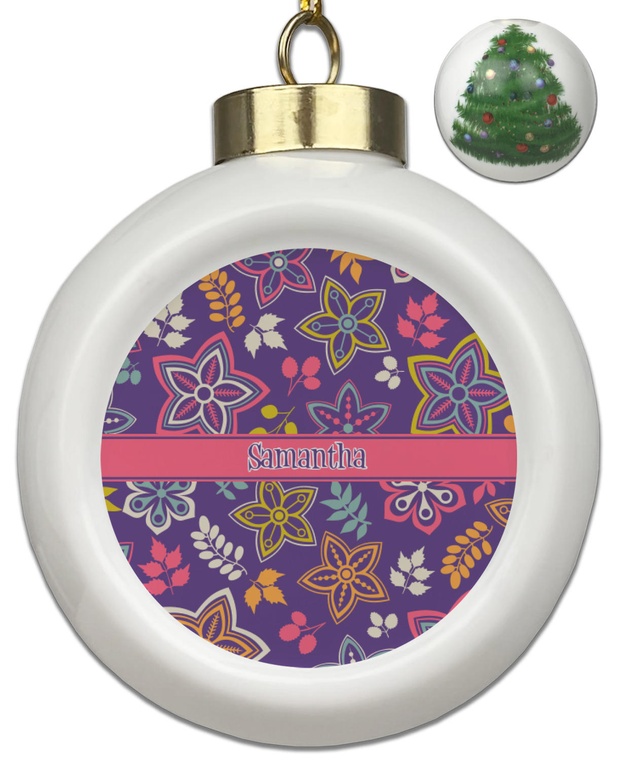 Our Christmas ornaments are a unique ceramic ball shape with a twist as it has a flat face to display your custom design! Select from one of our two design types - Christmas Tree or Poinsettia Garland - to adorn the curved back of your personal design. Each ornament measures 3H x 2.5W x 2D accompanied with a gold string accent for finishing touches to hang on your beautiful Christmas tree!