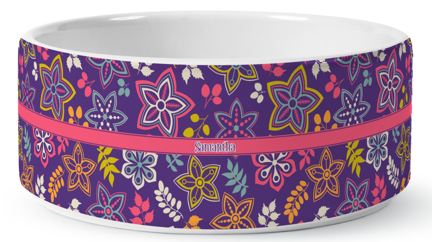 Our customized, ceramic dog bowls allow you to fashion a durable, yet expressive gift for your pet. These bowls are fashionably versatile; they suit both cats and dogs and can hold either food or water. Add your pet's name or favorite color to the design, and spruce up his/her eating area with one or two personalized pet bowls!