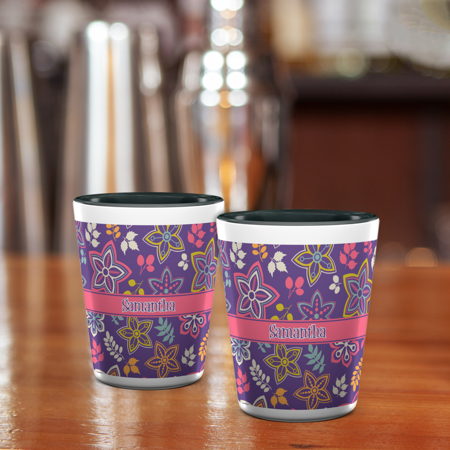 Made from ceramic these shot glasses are printed in full color with the design of your choice. These are a standard 1.5oz size and stand 2.25" tall. Available in a full white ceramic or a two-tone with a black color inside the shot glass. Buy a single or a set of 4, all of which can be designed separately to get you just what you want and need.