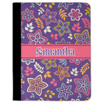 The flowers in this design are are a vibrant mix of fall colors, all on a deep plum background. The design has a classic ribbon in hot pink, the perfect place to add a name for that personal touch to pull the entire design together.