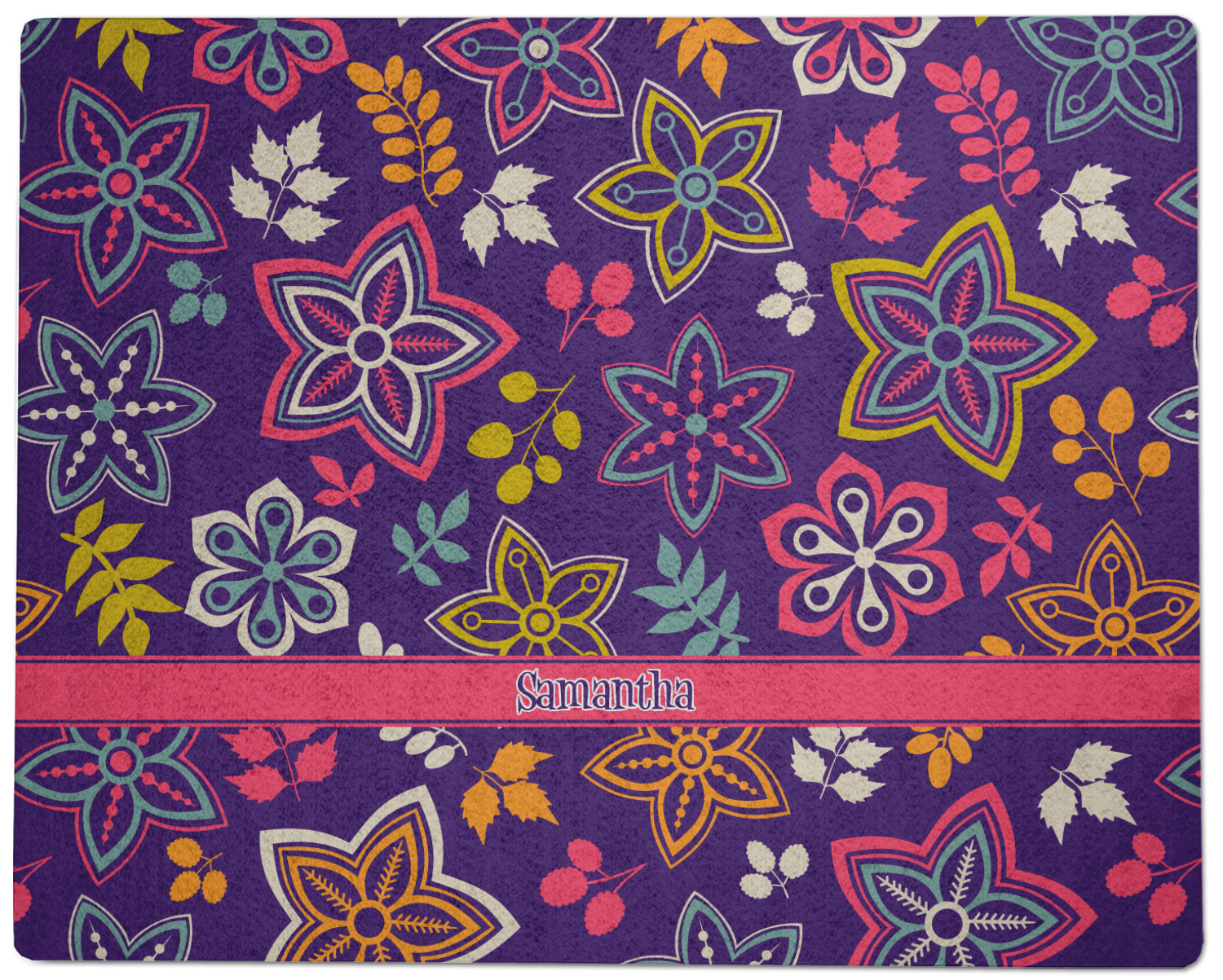 The flowers in this design are are a vibrant mix of fall colors, all on a deep plum background. The design has a classic ribbon in hot pink, the perfect place to add a name for that personal touch to pull the entire design together.