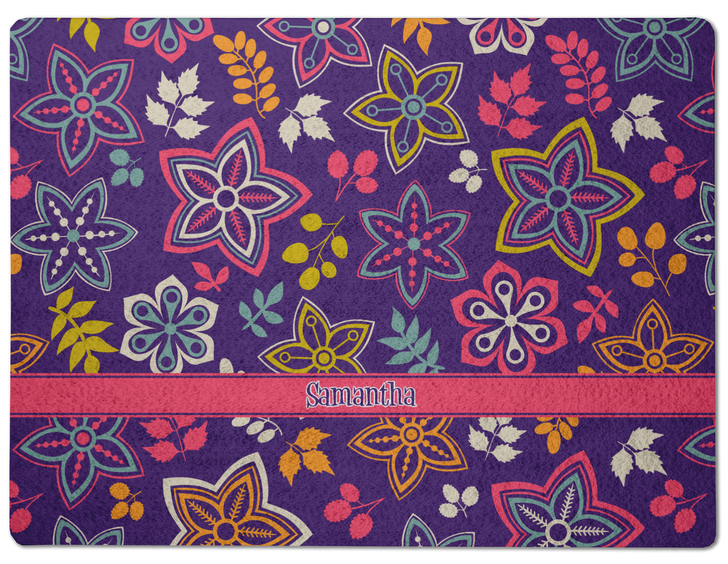 The flowers in this design are are a vibrant mix of fall colors, all on a deep plum background. The design has a classic ribbon in hot pink, the perfect place to add a name for that personal touch to pull the entire design together.