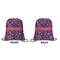 Our drawstring backpacks are available in 3 sizes. Small is approx 15in tall by 13in wide. Medium is approximately 18in tall by 17in wide. Large is 23in tall and 19in wide.