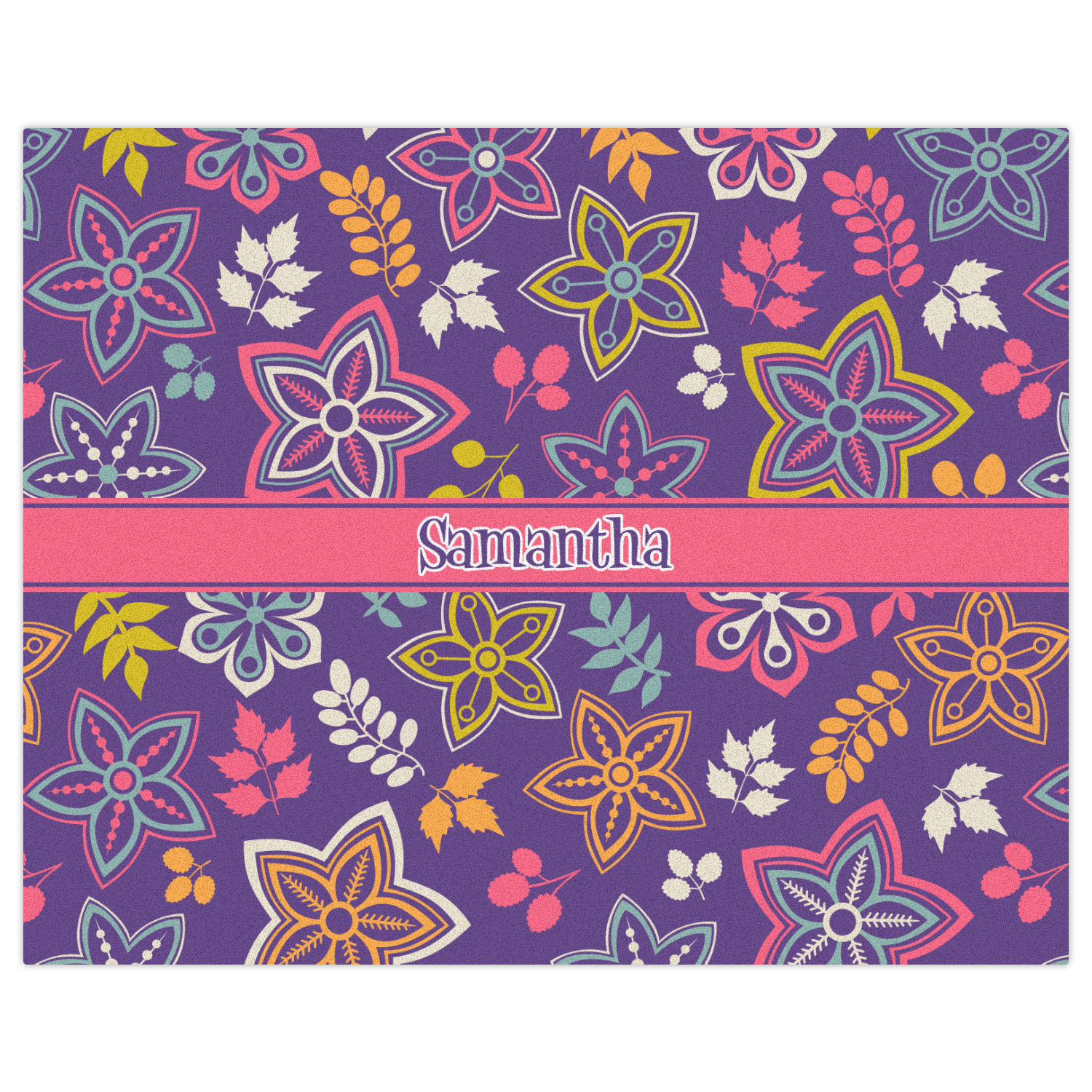 The flowers in this design are are a vibrant mix of fall colors, all on a deep plum background. The design has a classic ribbon in hot pink, the perfect place to add a name for that personal touch to pull the entire design together.