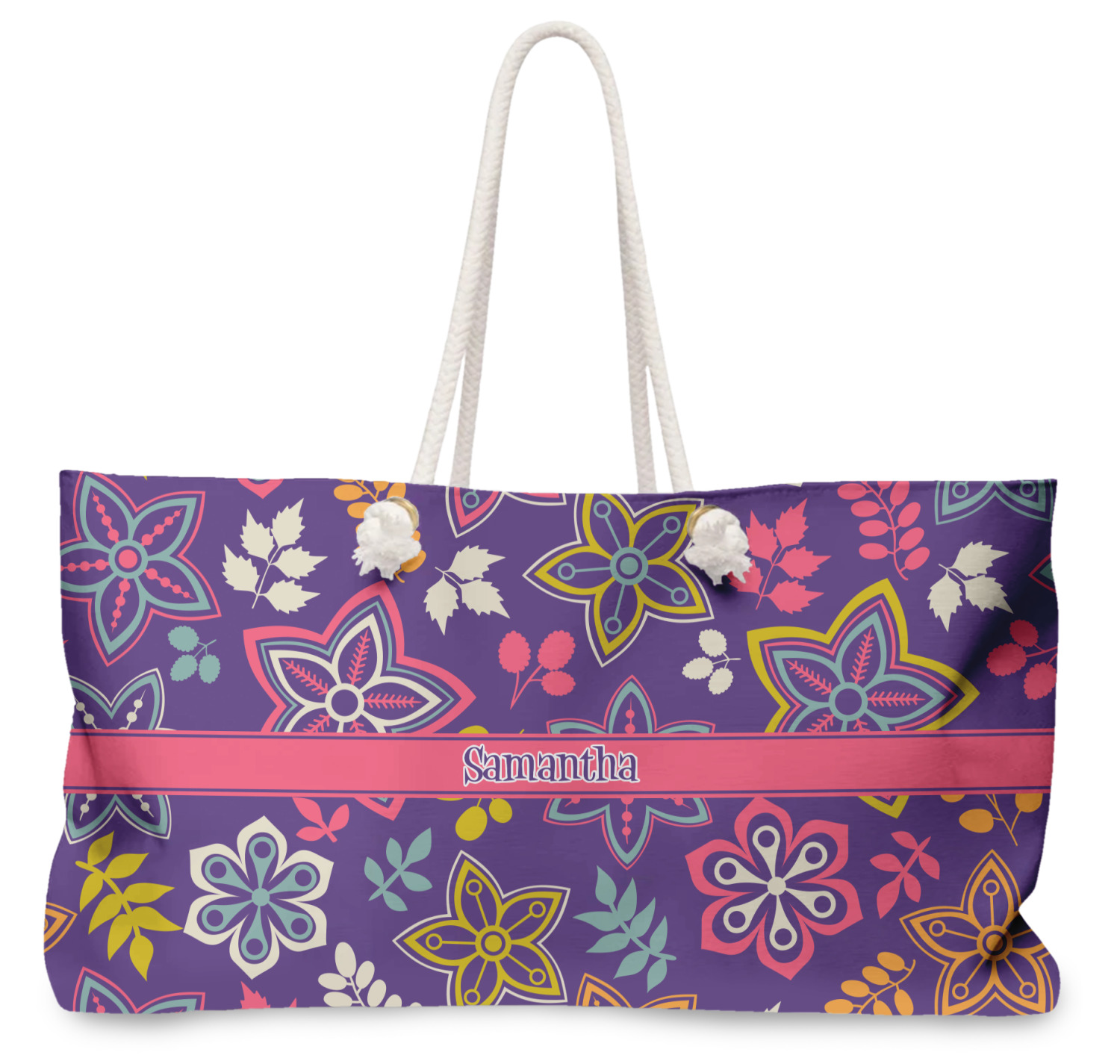 These weekender totes can be customized front and back. The totes are full all over print - so the choice of how background are endless - from beautiful floral or leaf patterns to geometrics or some classic Van Gogh artwork - the possibilities are endless. The totes can also be decorated with photos and logos.