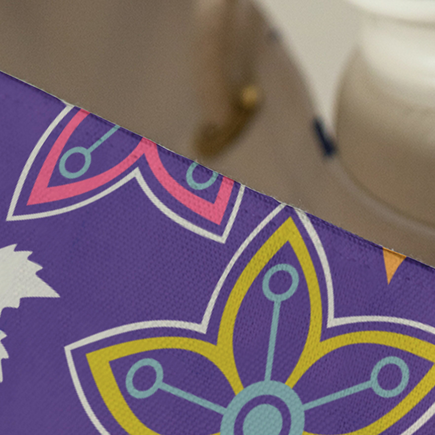 These large totes are handmade i.e. printed, cut and sewn right here in the USA. The canvas like material is printed using dye sublimation; the fabric is then cut and sewn along with a beautiful cream colored lining (to match the rope handles). The brass grommets are then added and the cream colored rope if fed through the grommets and knotted.