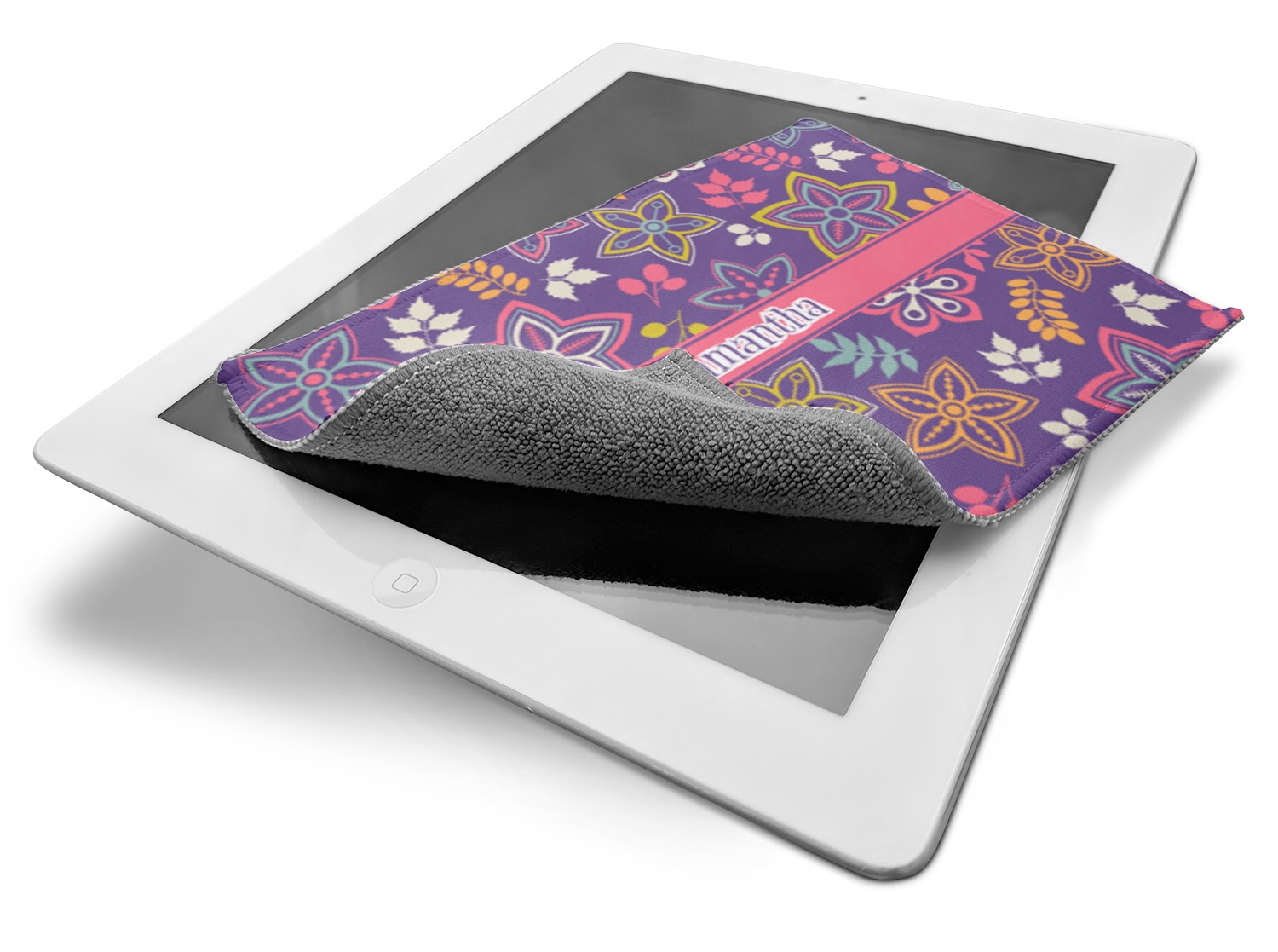 The back of this cleaning cloth is made from a gentle, grey microfiber material, that is masterful at removing smudges, grease, and fingerprints from lenses or electronic screens. The front side of the screen cleaner displays your personalized design in vibrant color. A beautiful stitch lines the edges and secures the microfiber to the polyester top. We provide you with the option of customizing this screen horizontally or vertically, depending on your preferences.