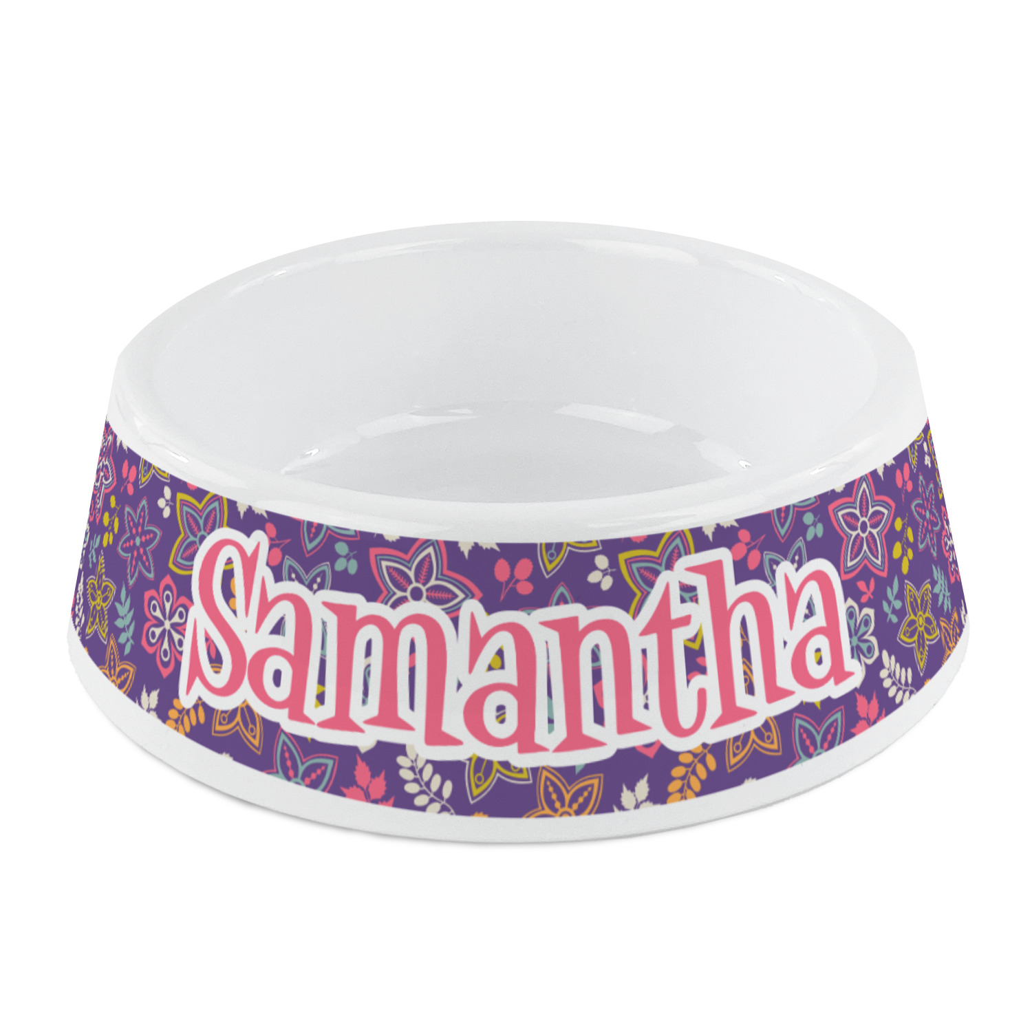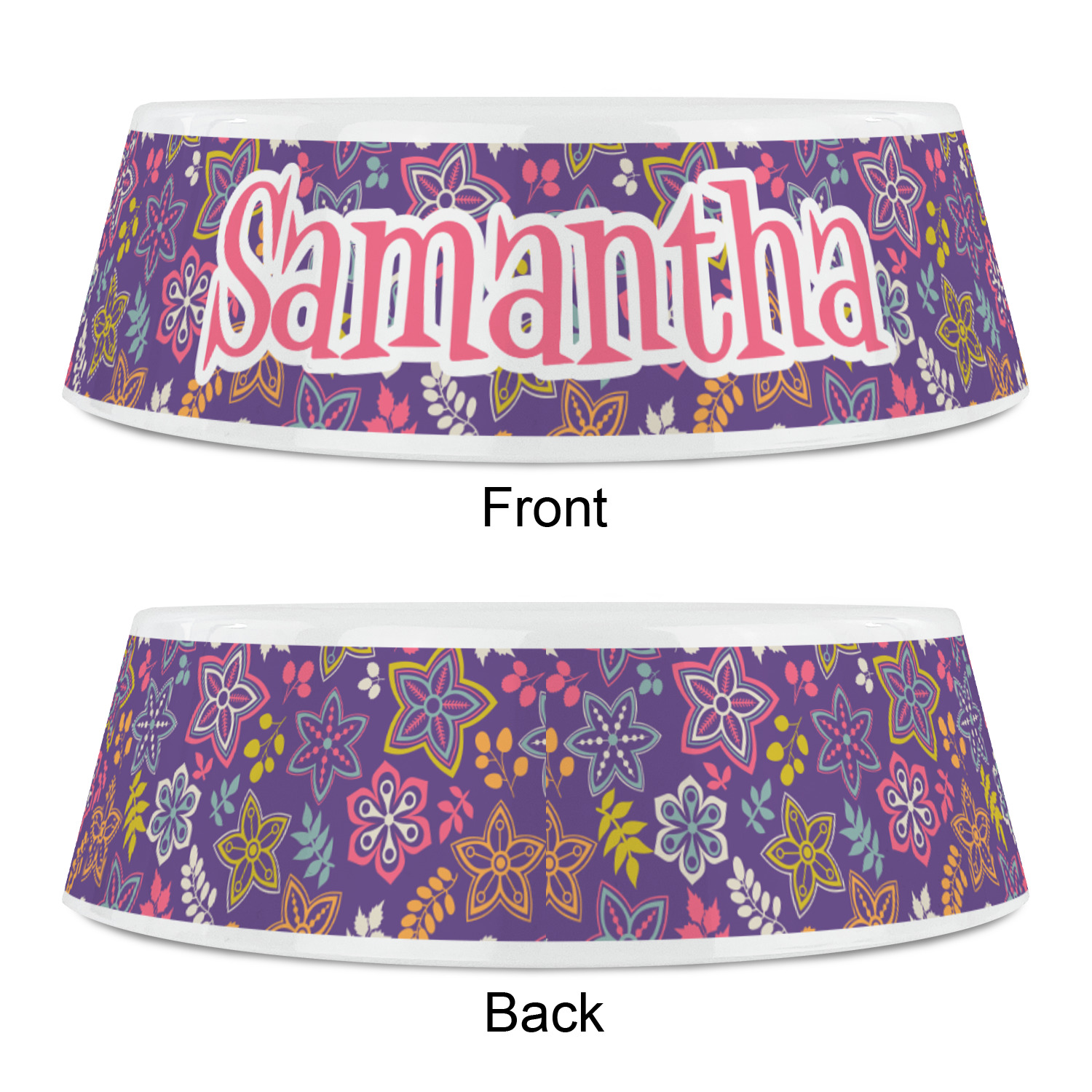 The flowers in this design are are a vibrant mix of fall colors, all on a deep plum background. The design has a classic ribbon in hot pink, the perfect place to add a name for that personal touch to pull the entire design together.