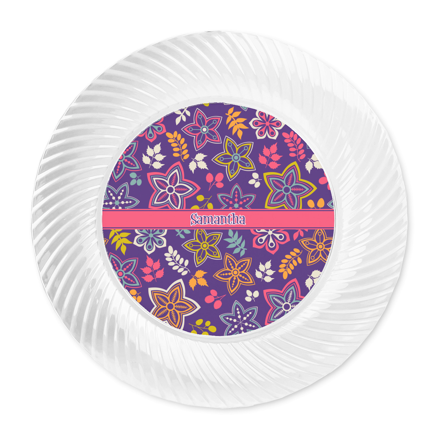 Made from a beautiful clear plastic plate as a base, your design is printed to the underside of the plate. The outside of these disposable plates has a classic swirl texture to it for a high quality look and feel.