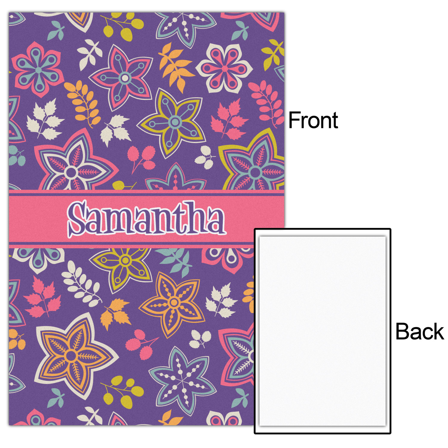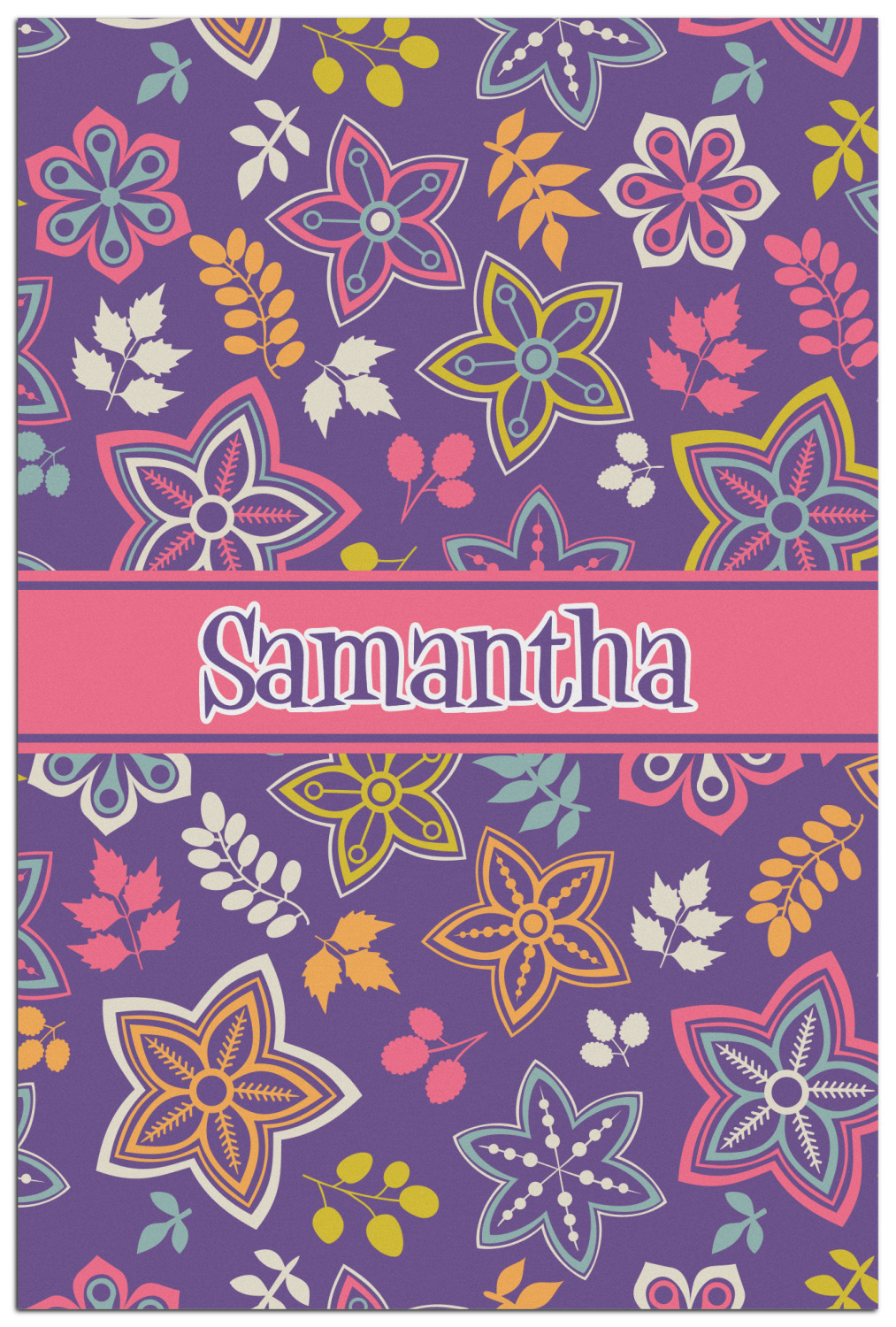 The flowers in this design are are a vibrant mix of fall colors, all on a deep plum background. The design has a classic ribbon in hot pink, the perfect place to add a name for that personal touch to pull the entire design together.