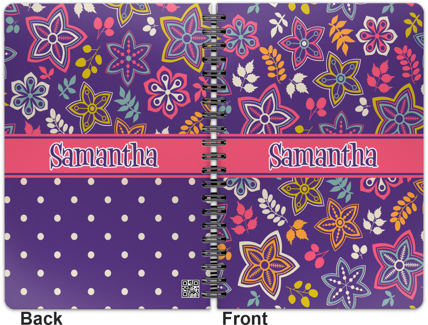 This spiral notebook includes 75 sheets of thick, ruled paper. The front and back of this custom notebook is made of a robust, laminate, plastic covering. We print your personalization on these two panels, underneath a glossy finish, which emphasizes the colors of your design. The two panels and the sheets of paper are held together by a sturdy, black coil. The paper within your bound notebook is perforated for easy, clean tearing.