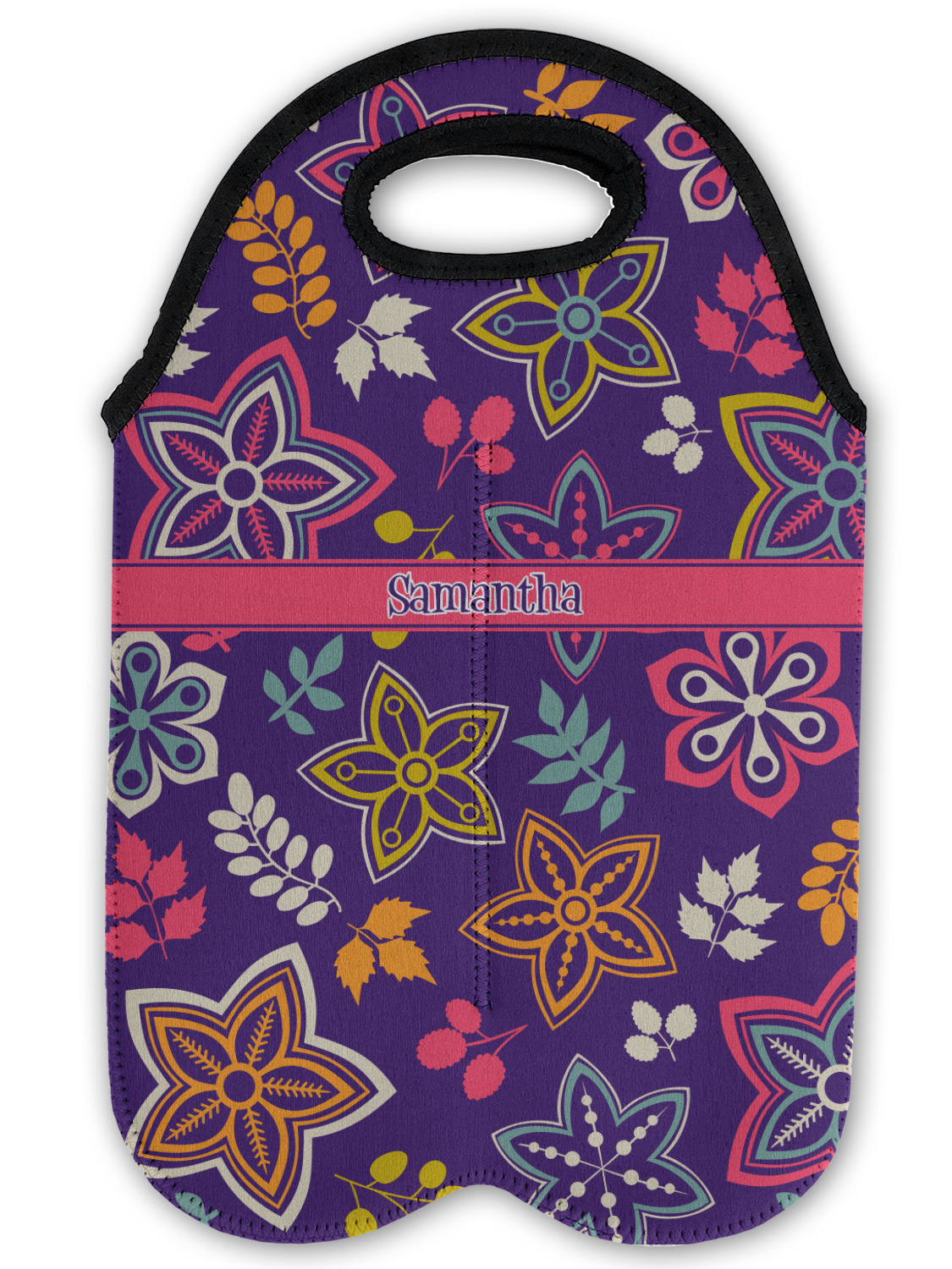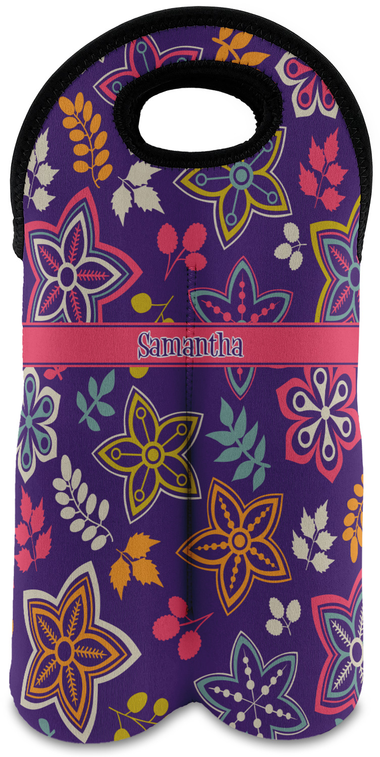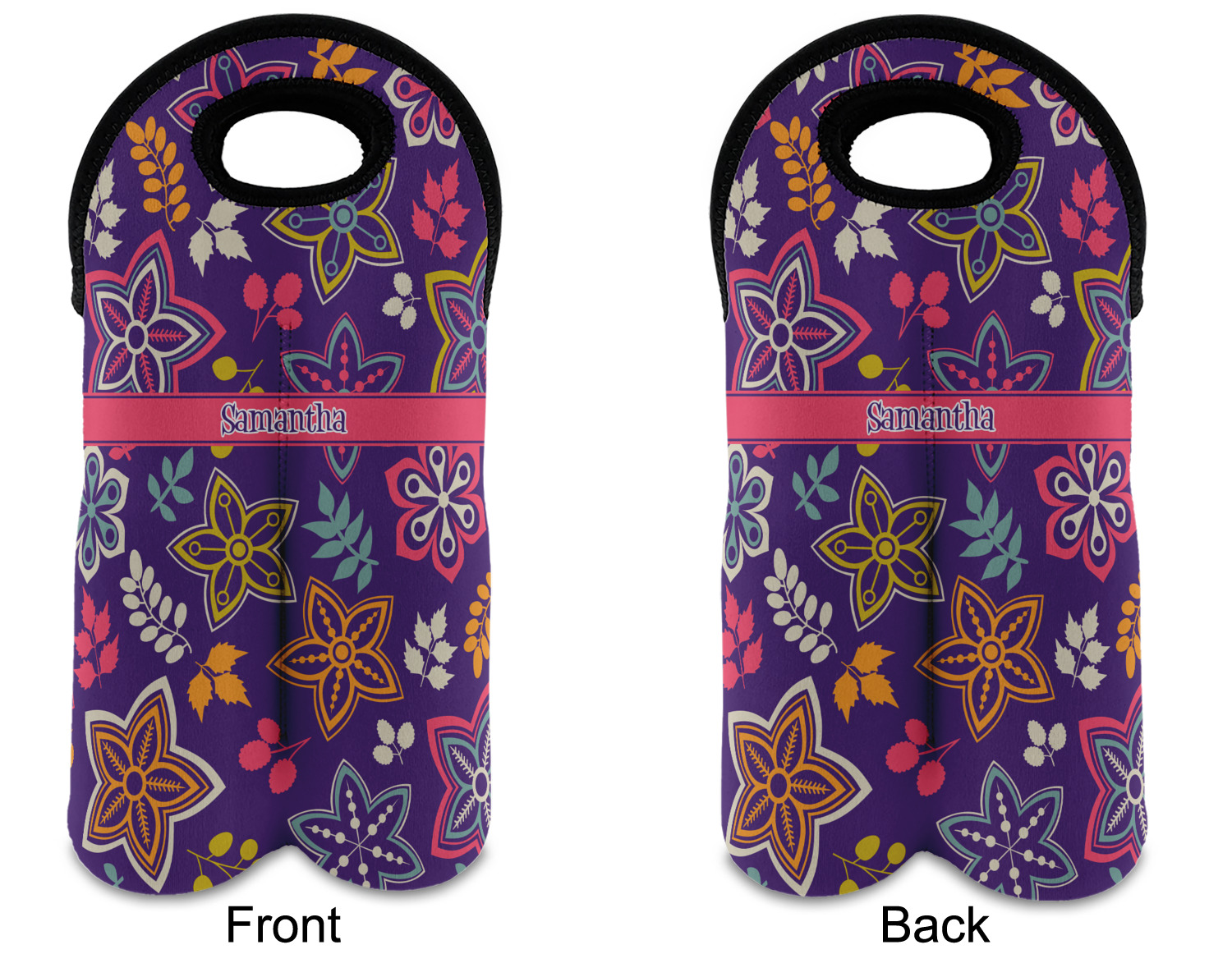 These tote bags are insulated to keep the bottles cold and have a stitched separation down the middle and double handles to keep the two bottles safe and secure during travels.