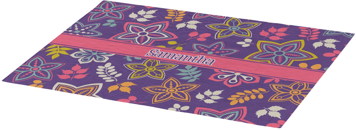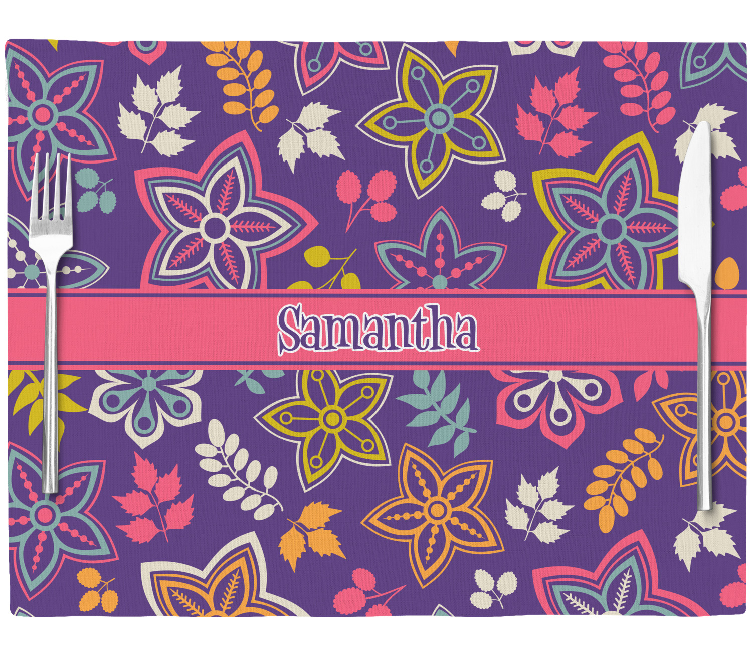 Each of our table mats are a poly twill material with woven burlap detailing. This creates a soft, quality placemat for us to fully print your personalized design across. The woven twill also adds a wrinkle-free surface to set your table! Each customizable placemat is a rectangle shape measuring at approximately 13 x 18 and printed here in the USA.