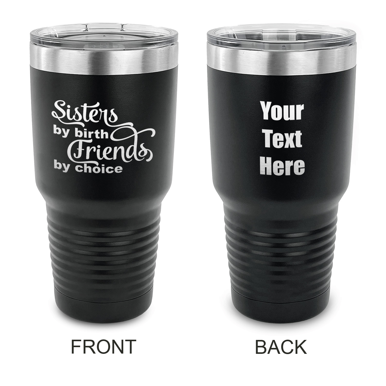With the 5 colors - Black, Navy, Red, Pink and Coral, you are sure to find a cup to fit your personality. You can chose to engrave on the front or the front and back of the cup. Use our design studio to design your own cup and we laser engrave it for you.