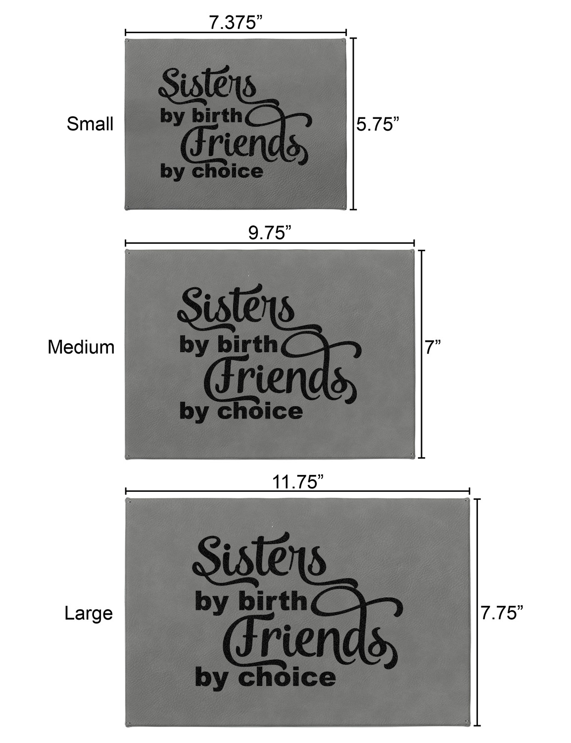 These gift boxes are available in 3 different sizes to accommodate various sized gifts. Available in gray as a neutral color for any occasion as well as to showcase your design boldly. Engraved with a laser this high quality paper board and faux leather gift box is unique and makes any gift stand out.