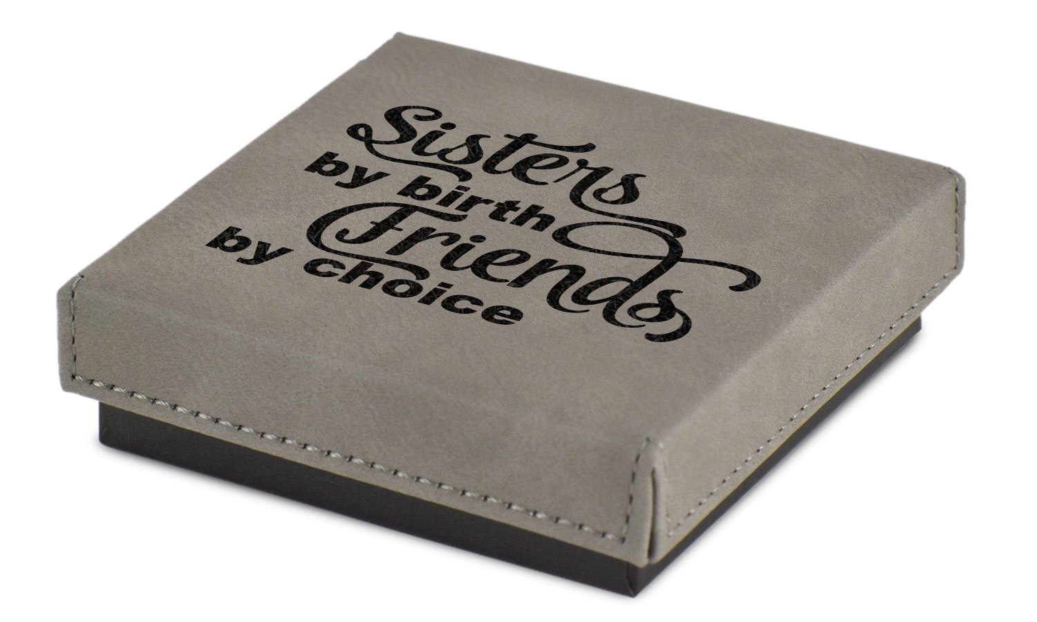 This jewelry gift box measures 3.5 inches long by 3.5 inches wide, and 1 inch deep. The box fits different sized jewelry items such as bracelets, necklaces, watches, earrings, rings and more. Engraved with a laser this high quality paper board and faux leather jewelry gift box is unique and makes any gift stand out.