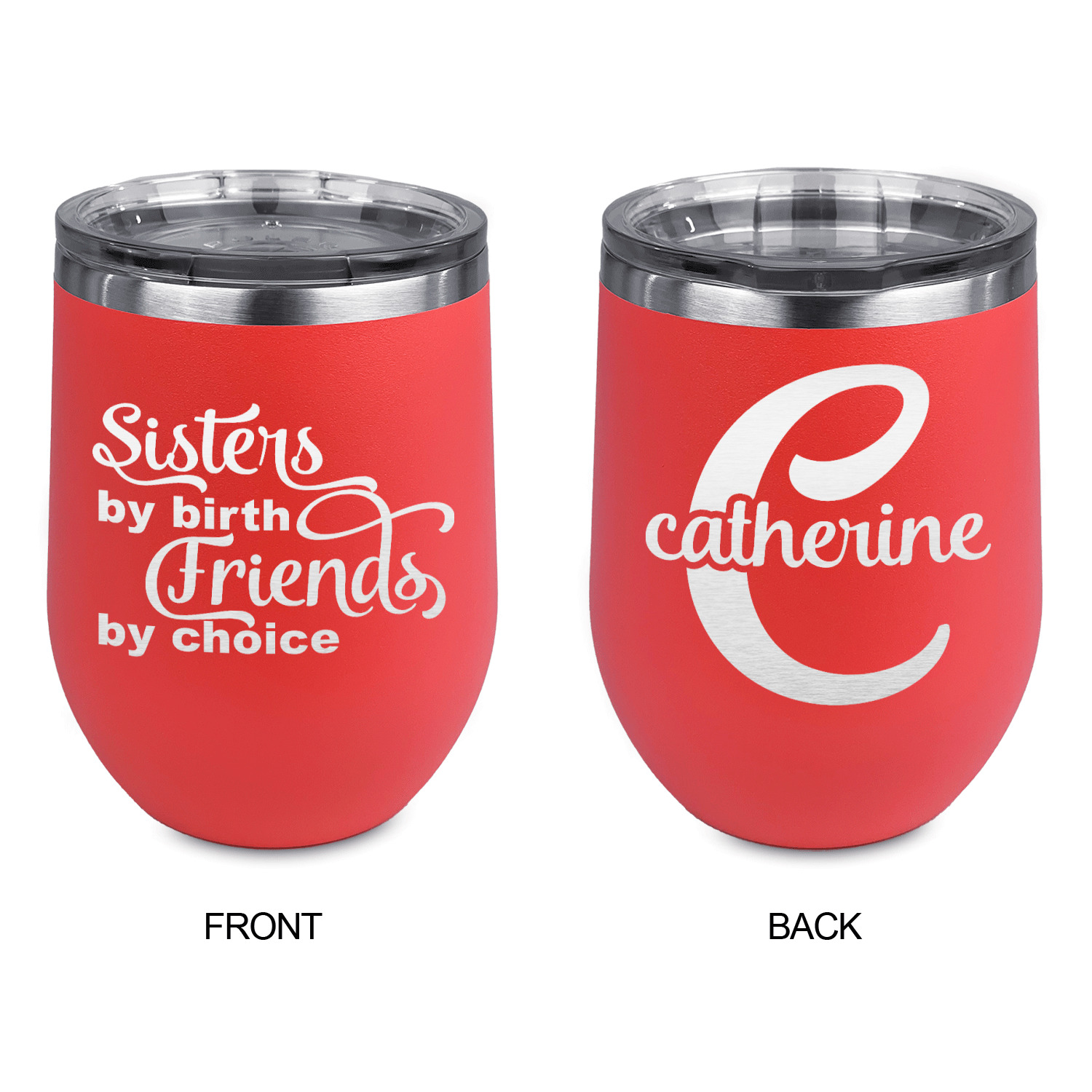 Design your wine tumbler with a cool graphic or quote. Even put your initials or monogram! These cups are laser engraved, which looks extra sharp on the metal tumbler.