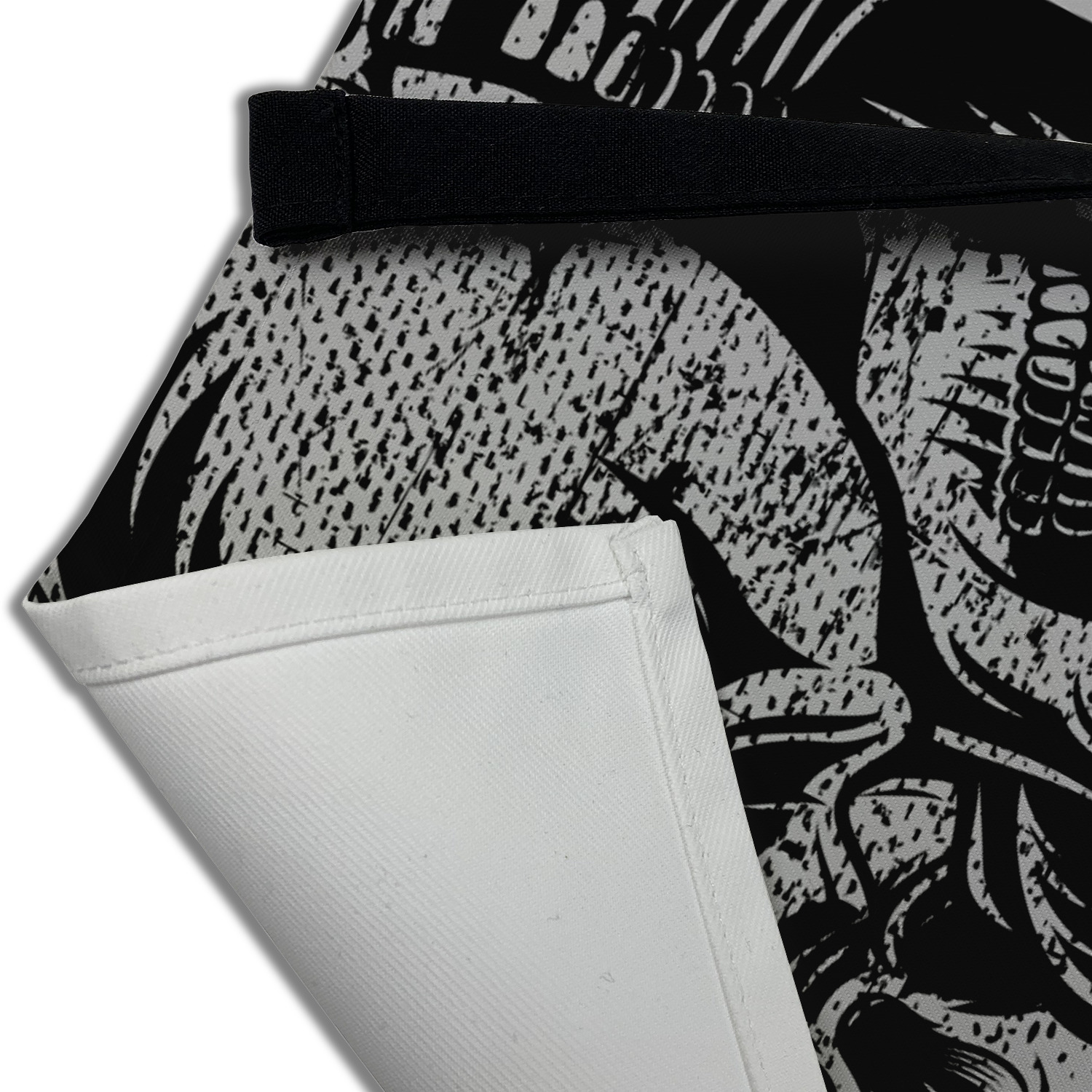 Our aprons are a lightweight yet durable polyester material. We offer two styles of aprons, one without pockets and one with two pockets adorning the center near the waistline. Each apron is one size* and comes with adjustable straps for both the neckline and waist. We print your custom design on the front of the apron to display your creativity!