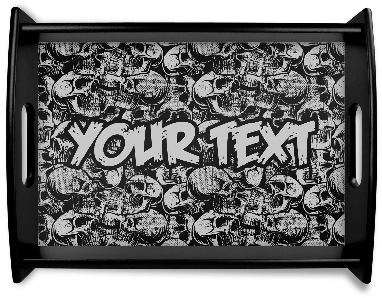This serving tray with handles features square edges and two rounded sides, creating a very modern look. Each side is fabricated from a beautifully cut, natural wood. The bottom of the interior of the tray displays your customized design in bright, vibrant color. The tray is sold in both a black color and a natural wood look. Each variation of the wood serving tray has two sizes: Small, which is 14" x 10" x 2.25", and Large, which is 19.5" x 13.5" x 2.75".