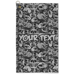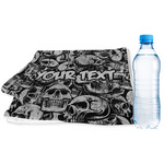 This design has a cool background with skulls facing every which way. They are all grey and black. You are able to personalize you design with the text that is placed at the bottom of the design. This really is the perfect design for your hardcore man!