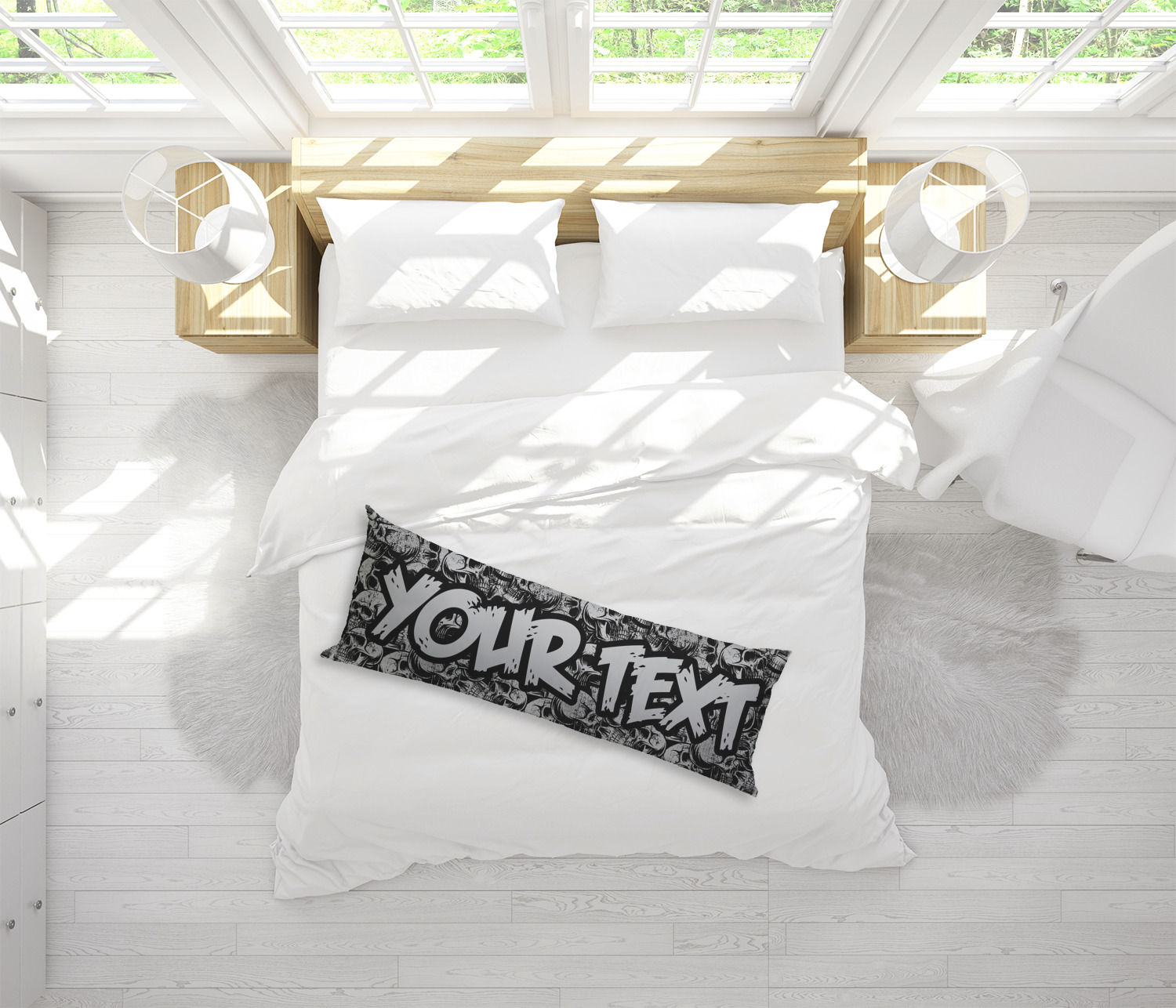 An opening on the side of the custom body pillow case allows for the insertion and removal of a pillow. This custom body pillow case measures at 54" x 20" and displays your design on its topside.