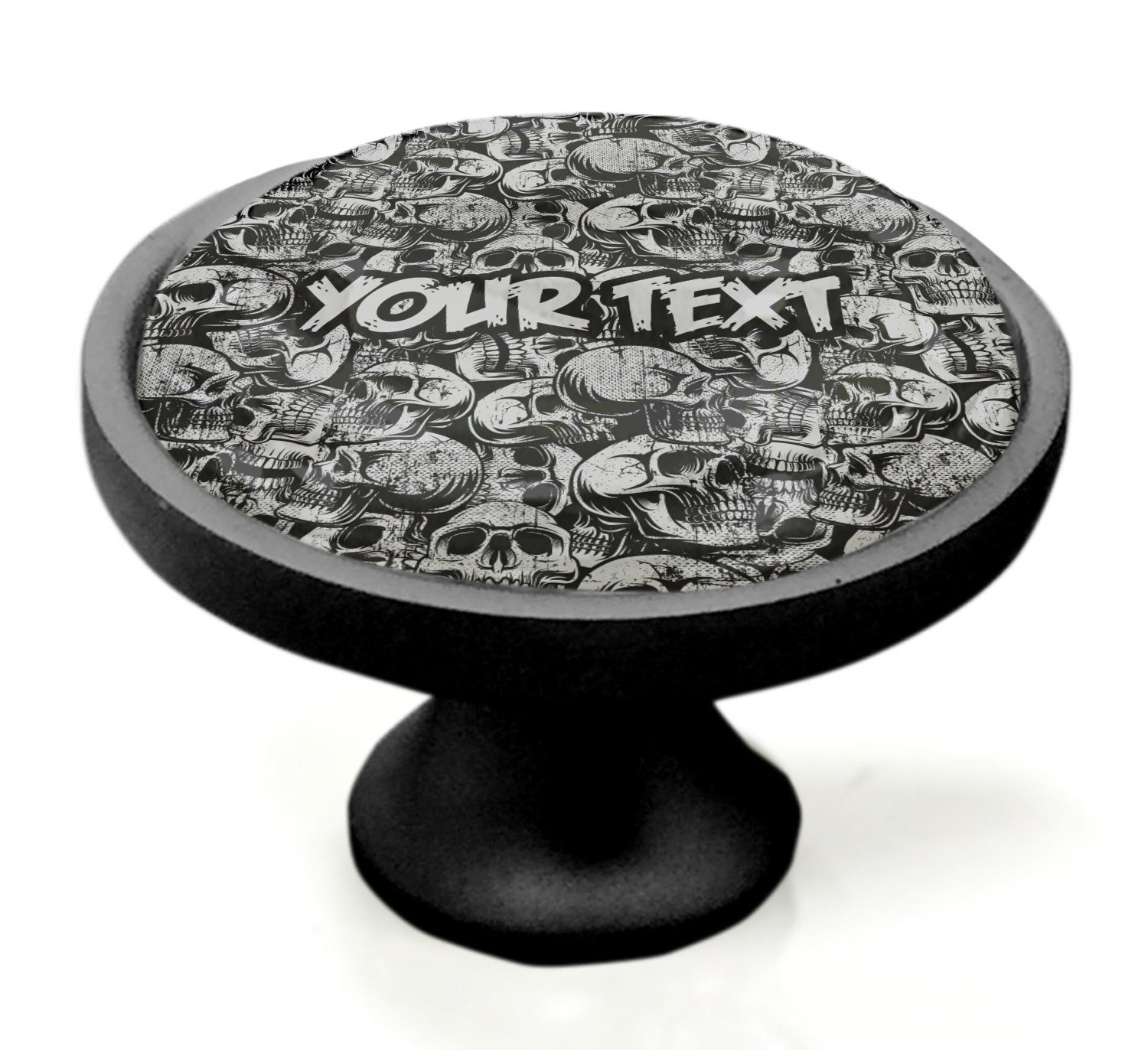 We sell these cabinet pulls in two different colors to better match your room's color scheme. We offer an oil-rubbed bronze base that is black in color, and a satin nickel option, which has a silver color. Your design is displayed across a high gloss vinyl insert that is placed on top of these cabinet handles. We then place a 1 inch thick glass cabochon atop the design, which seals the cabinet knob and makes the colors of your customization stand out. These custom cabinet knobs are approximately 1.3 inches in diameter. Your purchase includes a 1 inch screw that can be used to mount the knob to any cabinet in your home.