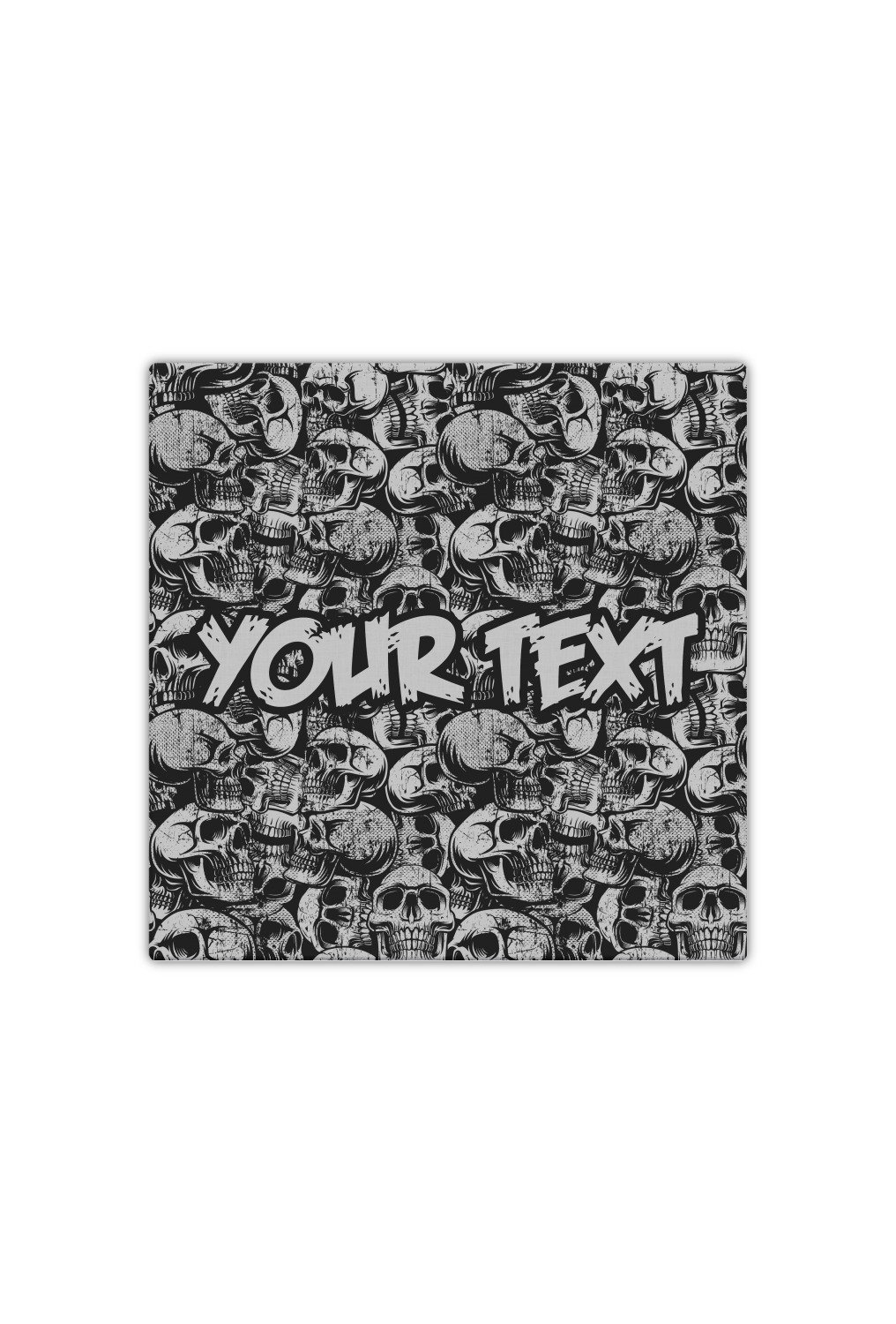 This design has a cool background with skulls facing every which way. They are all grey and black. You are able to personalize you design with the text that is placed at the bottom of the design. This really is the perfect design for your hardcore man!