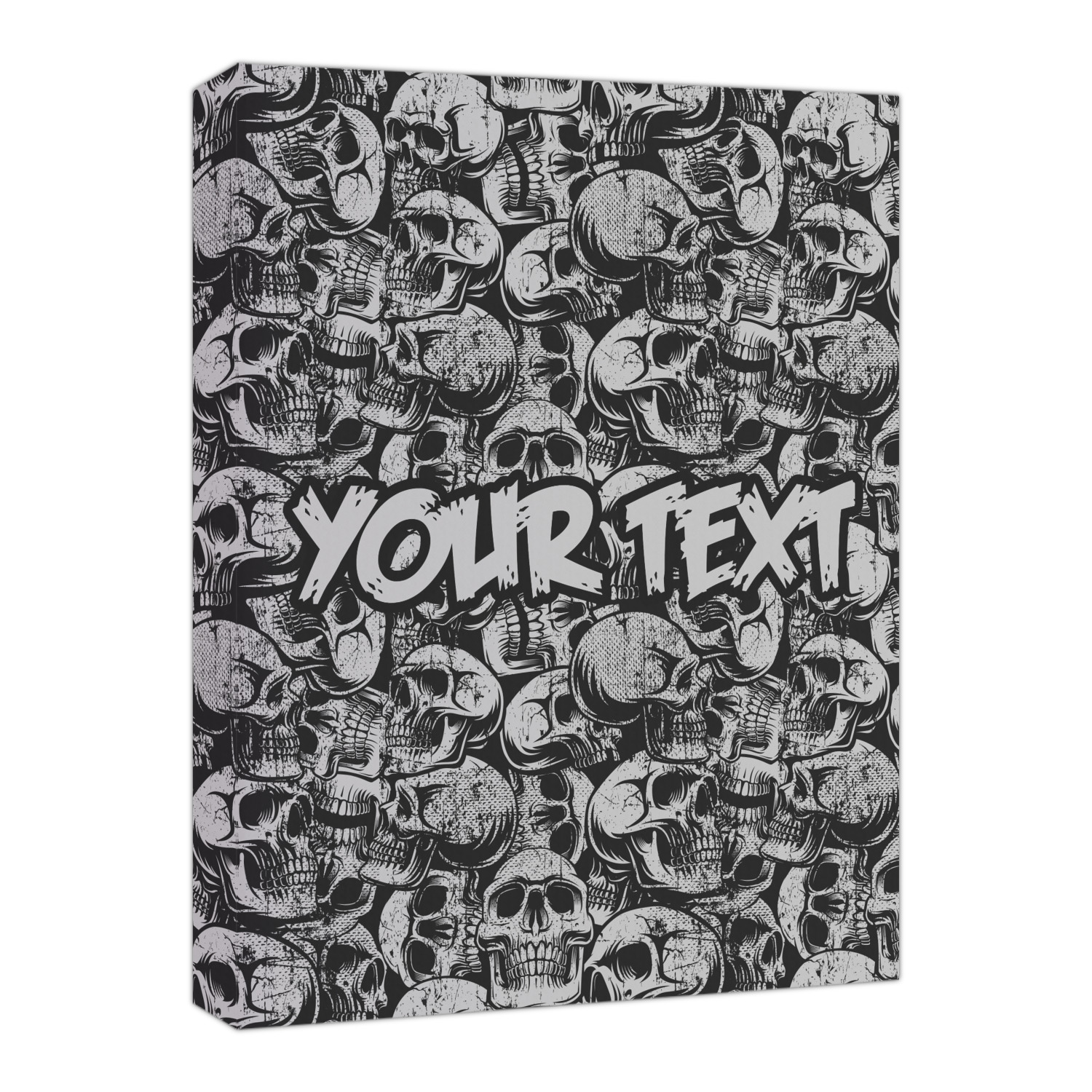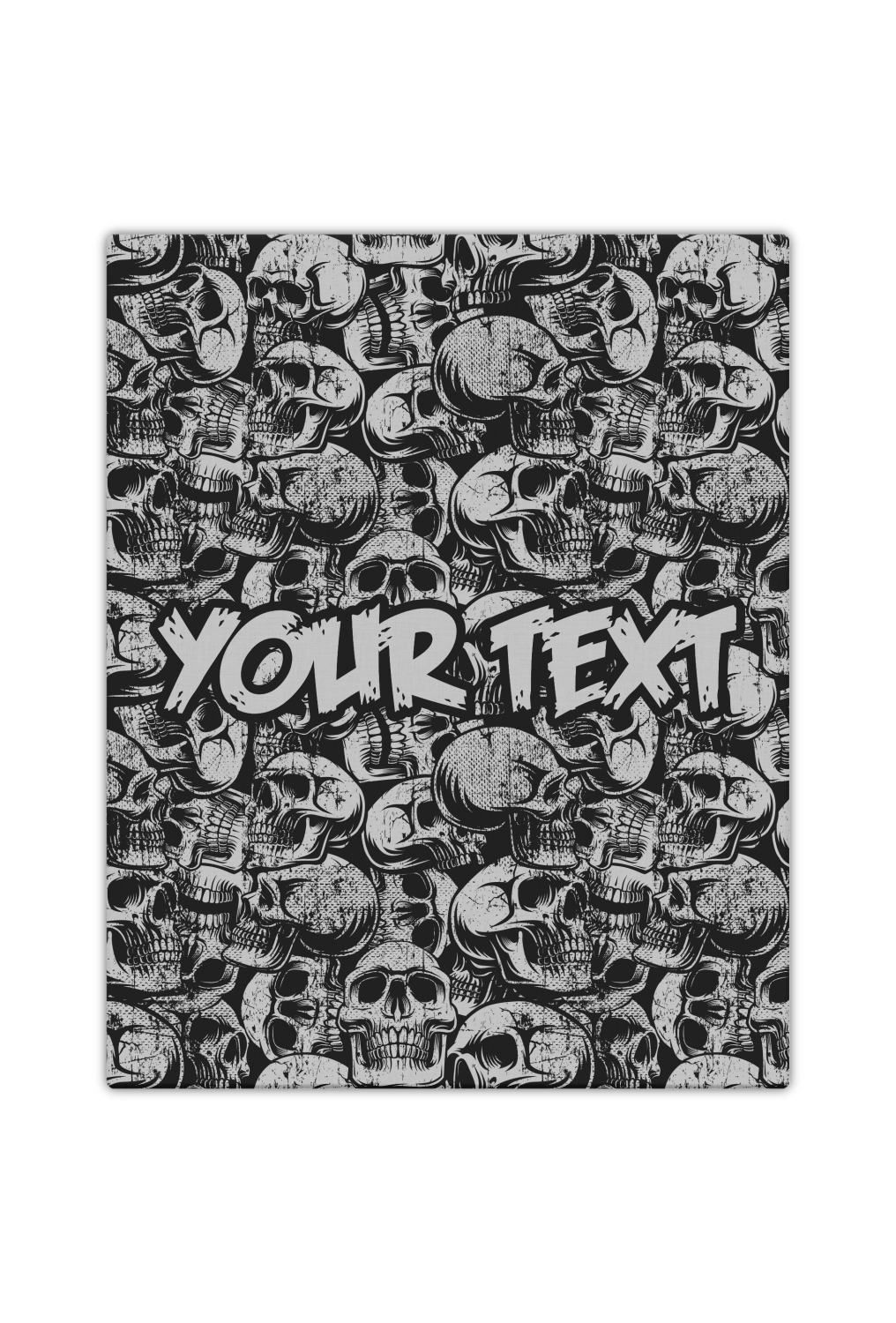 This design has a cool background with skulls facing every which way. They are all grey and black. You are able to personalize you design with the text that is placed at the bottom of the design. This really is the perfect design for your hardcore man!