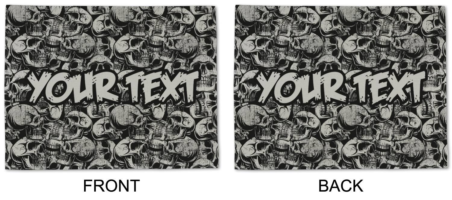 This design has a cool background with skulls facing every which way. They are all grey and black. You are able to personalize you design with the text that is placed at the bottom of the design. This really is the perfect design for your hardcore man!
