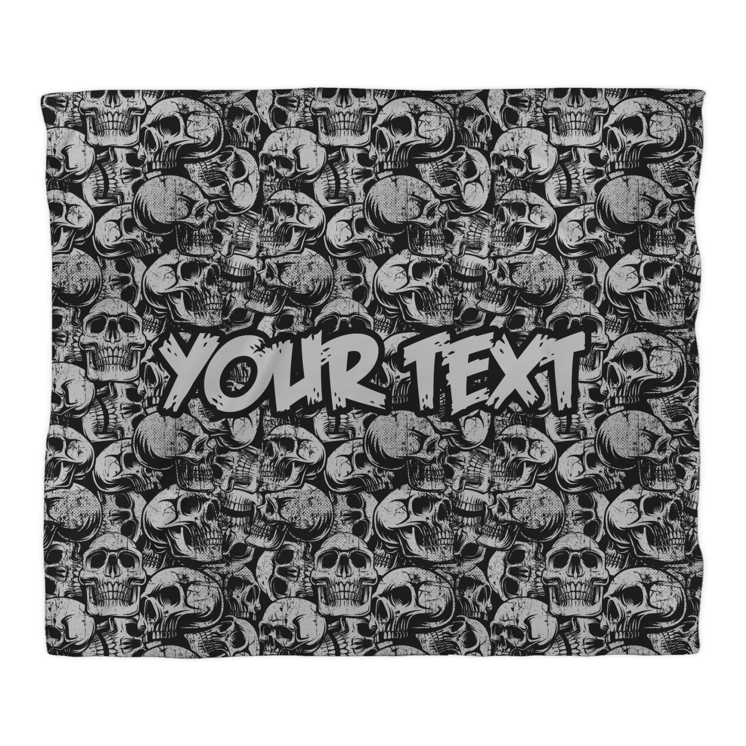 This design has a cool background with skulls facing every which way. They are all grey and black. You are able to personalize you design with the text that is placed at the bottom of the design. This really is the perfect design for your hardcore man!
