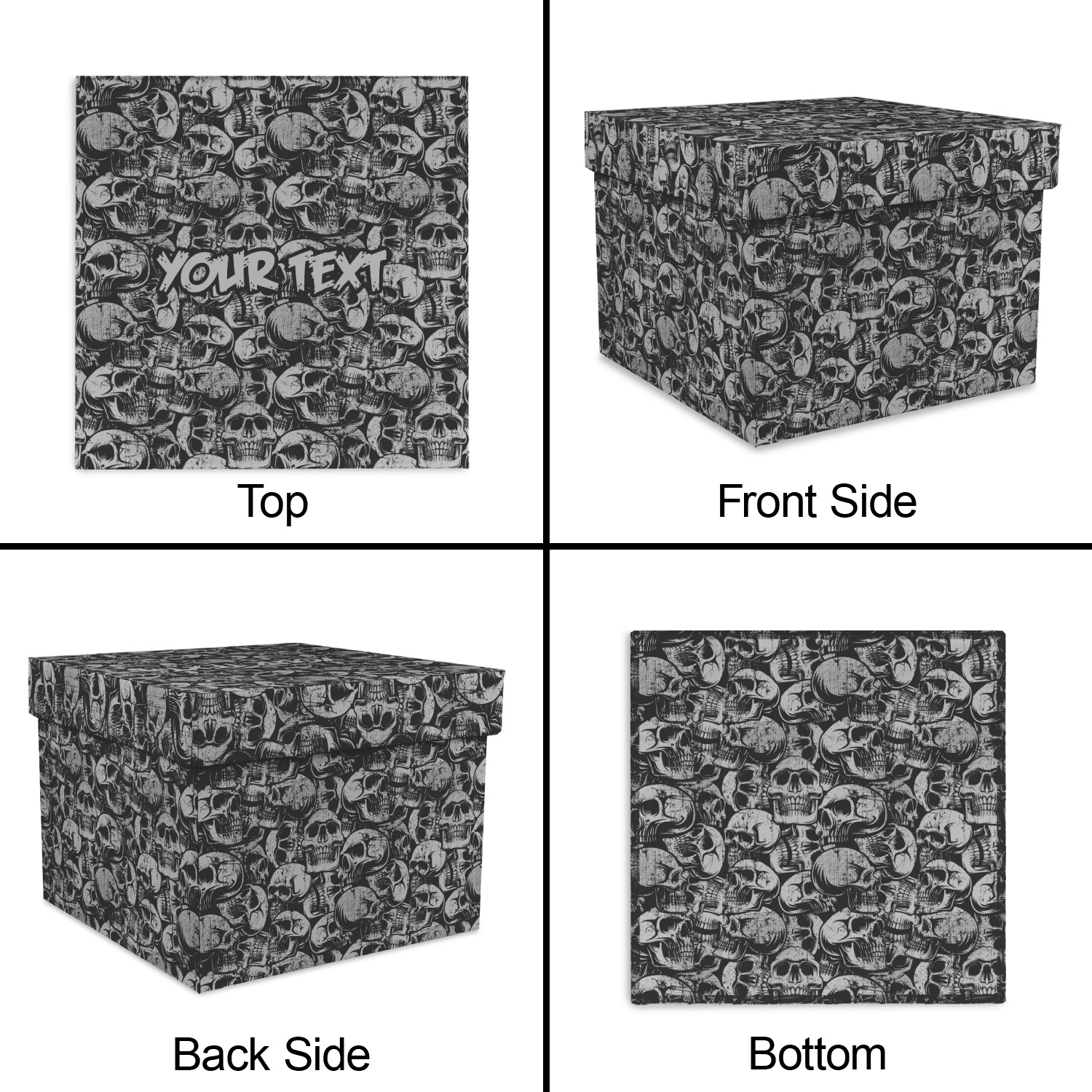 This design has a cool background with skulls facing every which way. They are all grey and black. You are able to personalize you design with the text that is placed at the bottom of the design. This really is the perfect design for your hardcore man!