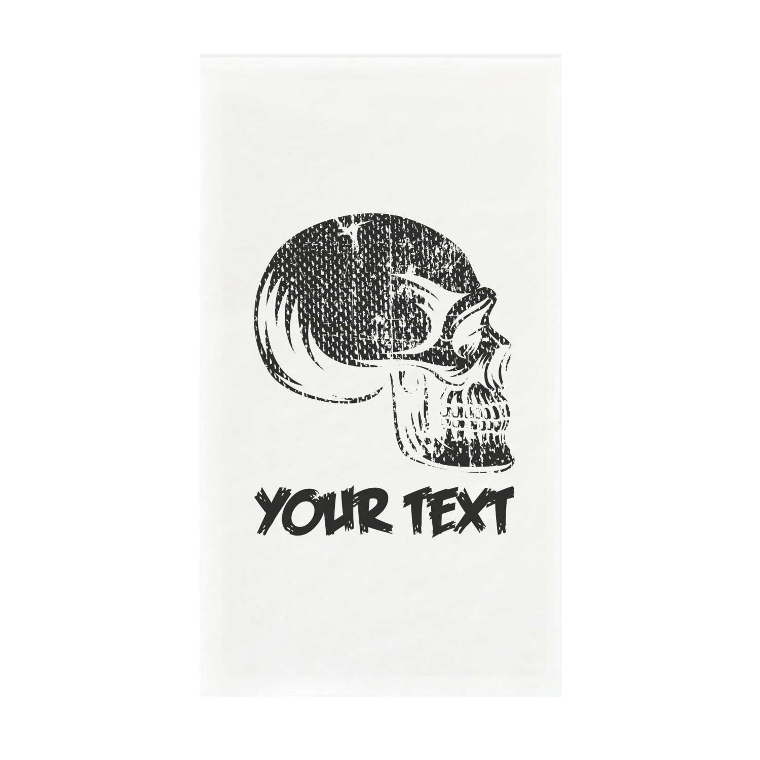 This design has a cool background with skulls facing every which way. They are all grey and black. You are able to personalize you design with the text that is placed at the bottom of the design. This really is the perfect design for your hardcore man!