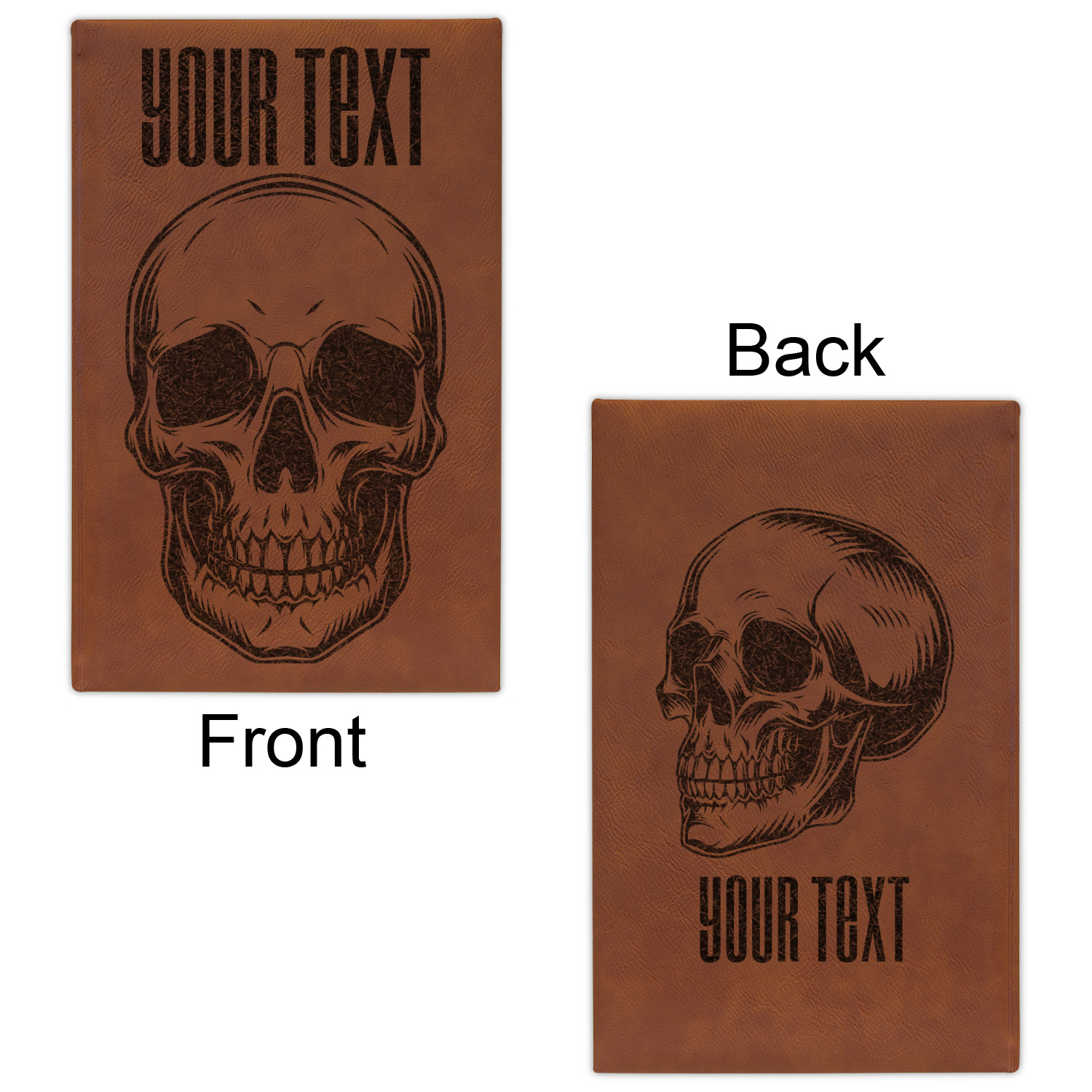 The faux leather covers are a rich cognac / rawhide color and can be customized with your design. From a simple name or monogram or a logo to a detailed mandala - the choice for customization & personalization is truly yours. Customize one of our designs or upload your own.