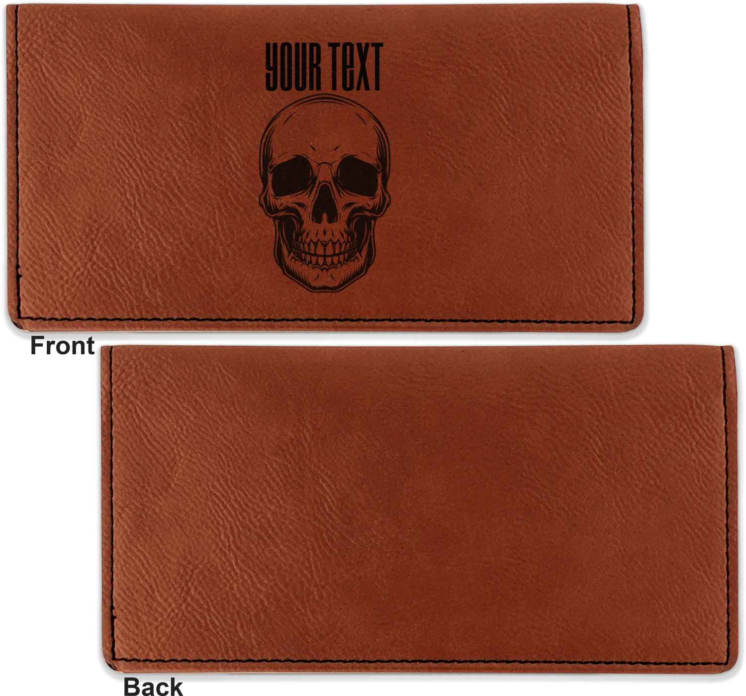 Go into our design center to start personalizing. Your checkbook cover will be laser engraved, making the graphic or text a black color. Choose a fun saying, monogram, or font to go on your checkbook cover. You have the opportunity to do it double or single sided.