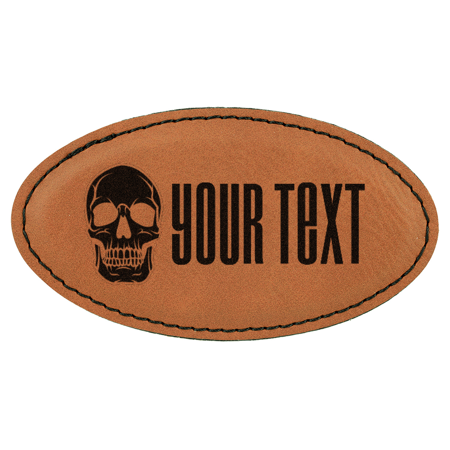 Made from a cognac-brown leatherette into an oval shape, these custom name badges measure at around 3.25" x 1.75". To add the suave appearance of this custom badge, a fine black stitching lines the edges or the badge itself. Your customized design is laser-engraved onto the surface of the leatherette. Accompanying your purchase is a removable magnet strip that can be used to secure the engraved name tag to any shirt, dress, or jacket.