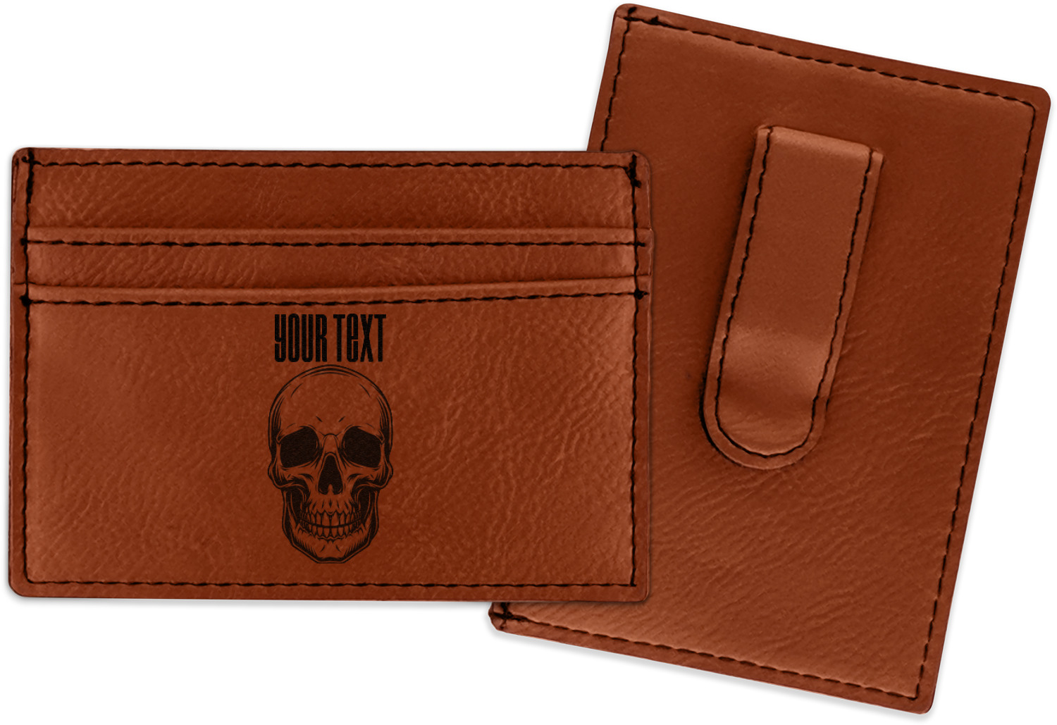 Made from a smooth brown leatherette material, these money clip wallets are the perfect accessory. They measure at approximately 4" x 2.75". On one side there is a money clip where you can slip in your cash. On the other side are three card slots for an ID and credit card or two. The money clip wallet will be laser engraved with your design on the side with the credit card slots. The graphic will come out as a black color.