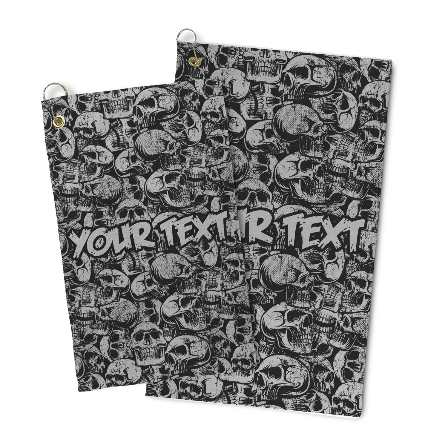 This design has a cool background with skulls facing every which way. They are all grey and black. You are able to personalize you design with the text that is placed at the bottom of the design. This really is the perfect design for your hardcore man!