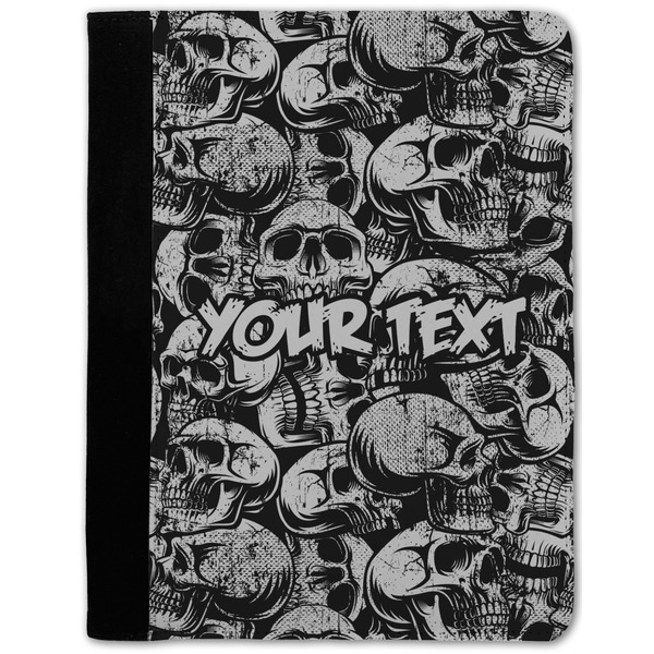 These personalized padfolios are made from a black, polyester microfiber and features a standard, 50-page notepad. However, these black padfolios can accommodate a pad with up to 100 pages. This model also features a slot pocket for any loose sheets of paper, small pockets for business cards, and an elastic band to secure a pen. We print your personalization across the front of this notepad portfolio in bright, vibrant color. These padfolios come in 2 sizes, Medium - approximately 10.25" x 8" for 5" x 8" paper and Large - approximately 12.5" x 8.5" for 8.5" x 11" paper.