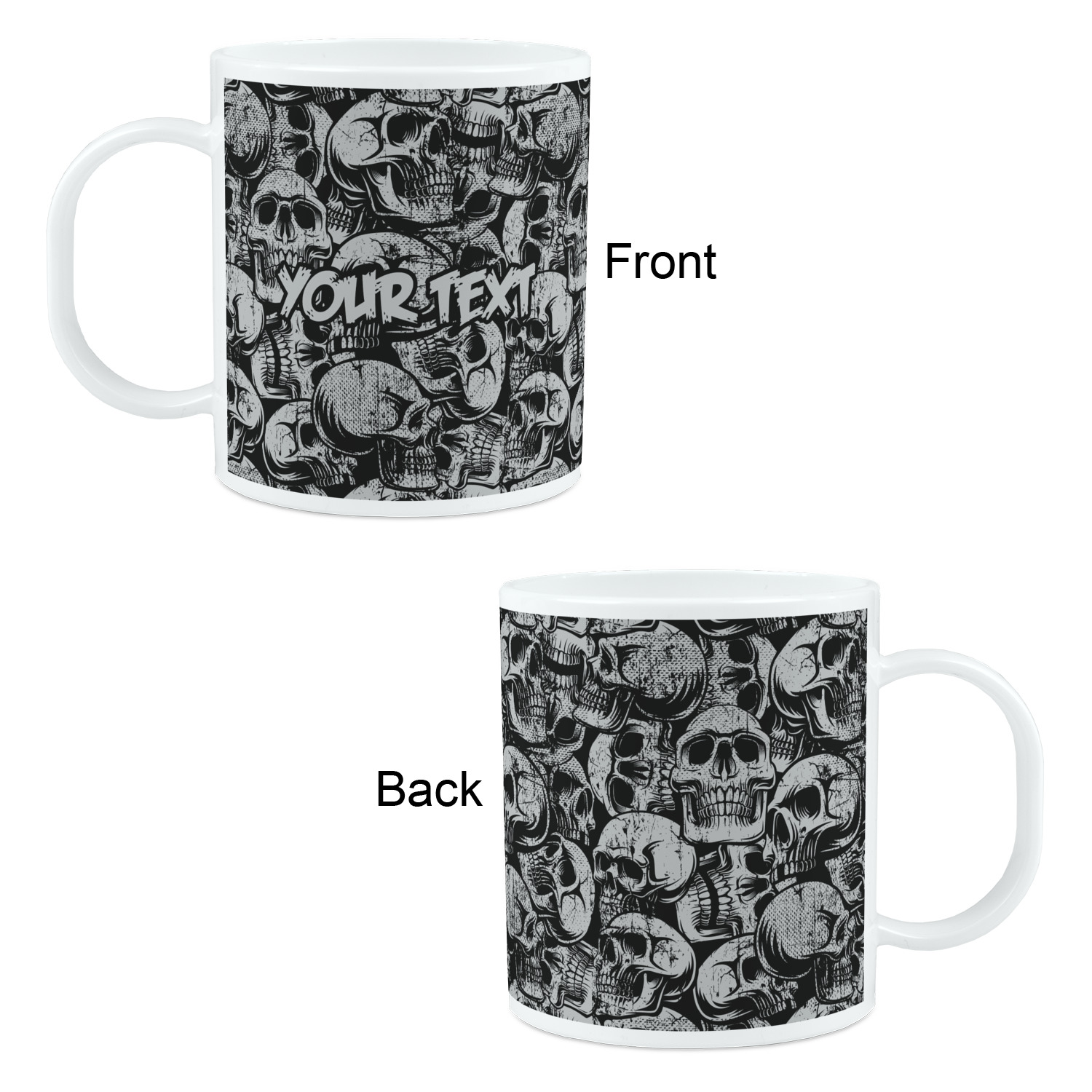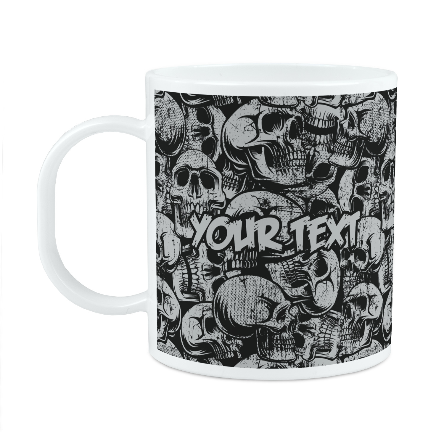 This design has a cool background with skulls facing every which way. They are all grey and black. You are able to personalize you design with the text that is placed at the bottom of the design. This really is the perfect design for your hardcore man!