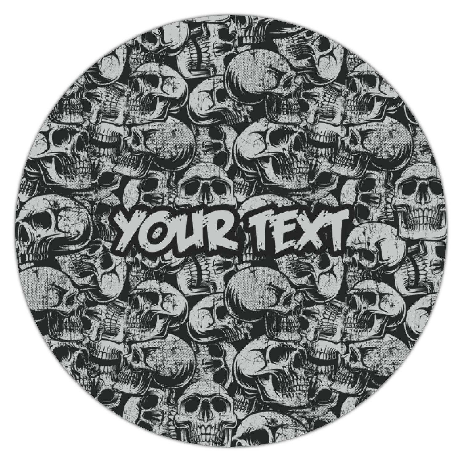 This design has a cool background with skulls facing every which way. They are all grey and black. You are able to personalize you design with the text that is placed at the bottom of the design. This really is the perfect design for your hardcore man!