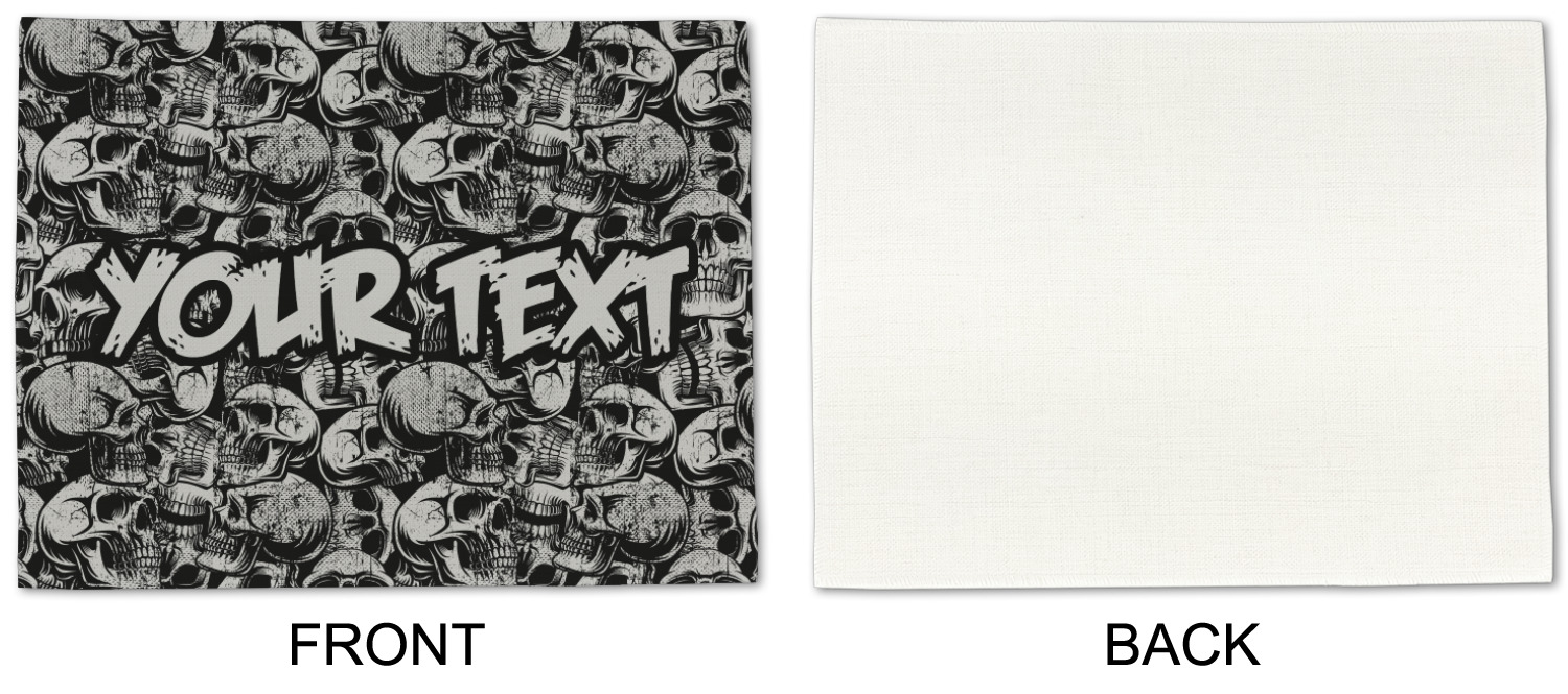 This design has a cool background with skulls facing every which way. They are all grey and black. You are able to personalize you design with the text that is placed at the bottom of the design. This really is the perfect design for your hardcore man!
