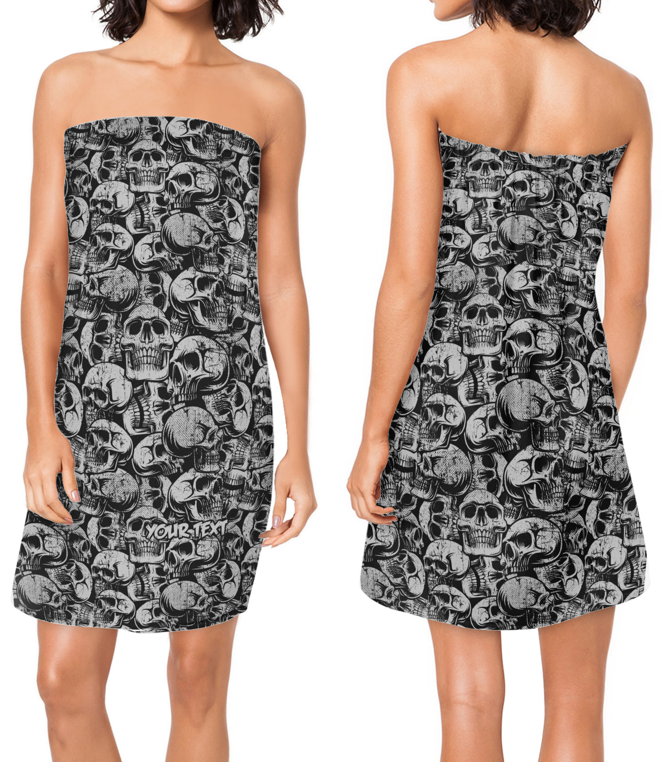 This design has a cool background with skulls facing every which way. They are all grey and black. You are able to personalize you design with the text that is placed at the bottom of the design. This really is the perfect design for your hardcore man!