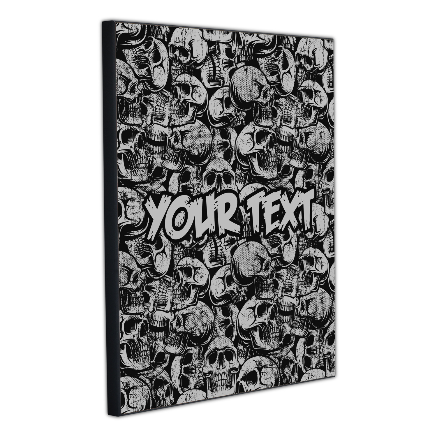 This design has a cool background with skulls facing every which way. They are all grey and black. You are able to personalize you design with the text that is placed at the bottom of the design. This really is the perfect design for your hardcore man!