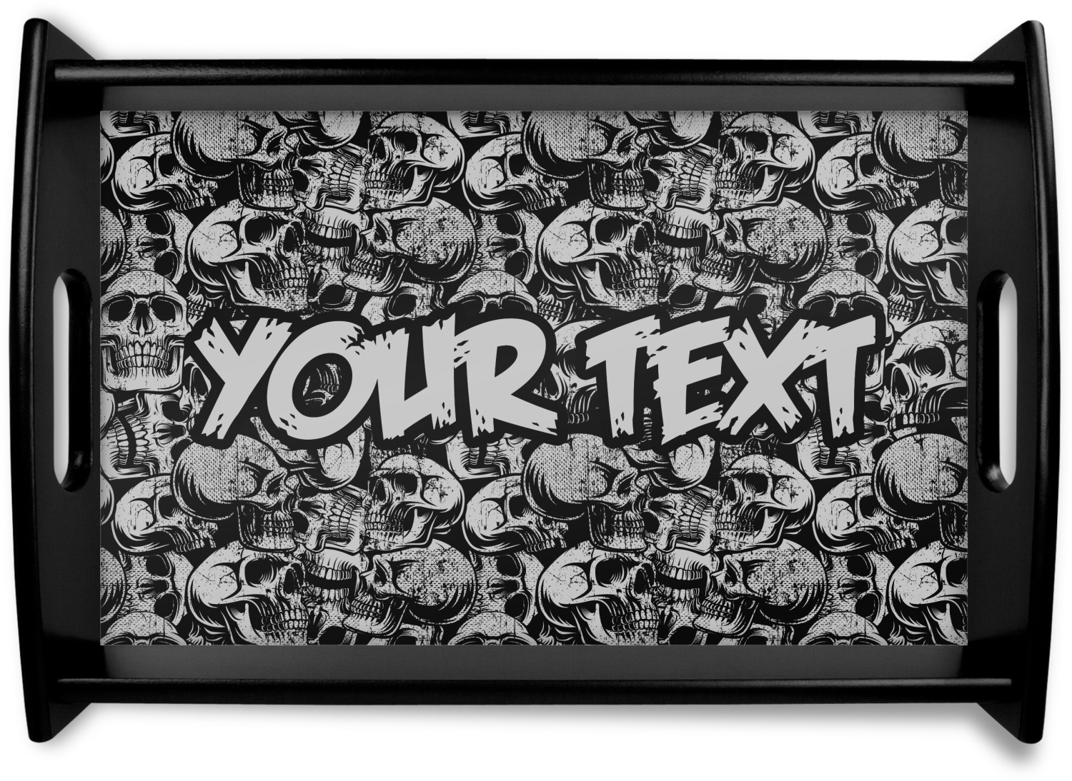 This serving tray with handles features square edges and two rounded sides, creating a very modern look. Each side is fabricated from a beautifully cut, natural wood. The bottom of the interior of the tray displays your customized design in bright, vibrant color. The tray is sold in both a black color and a natural wood look. Each variation of the wood serving tray has two sizes: Small, which is 14" x 10" x 2.25", and Large, which is 19.5" x 13.5" x 2.75".