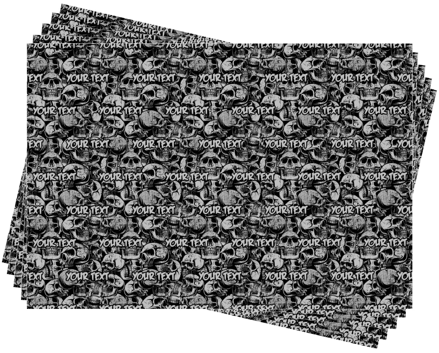 This design has a cool background with skulls facing every which way. They are all grey and black. You are able to personalize you design with the text that is placed at the bottom of the design. This really is the perfect design for your hardcore man!