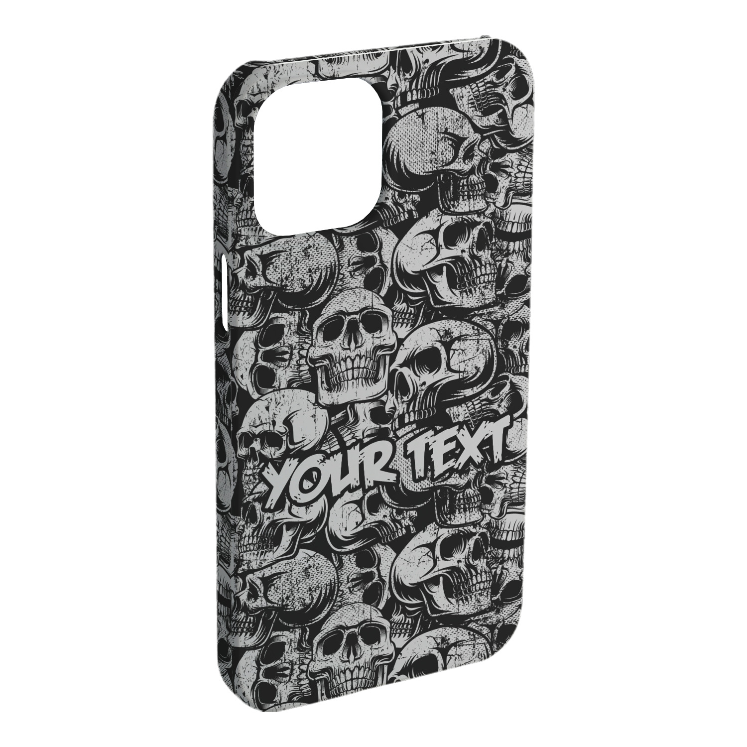 This design has a cool background with skulls facing every which way. They are all grey and black. You are able to personalize you design with the text that is placed at the bottom of the design. This really is the perfect design for your hardcore man!