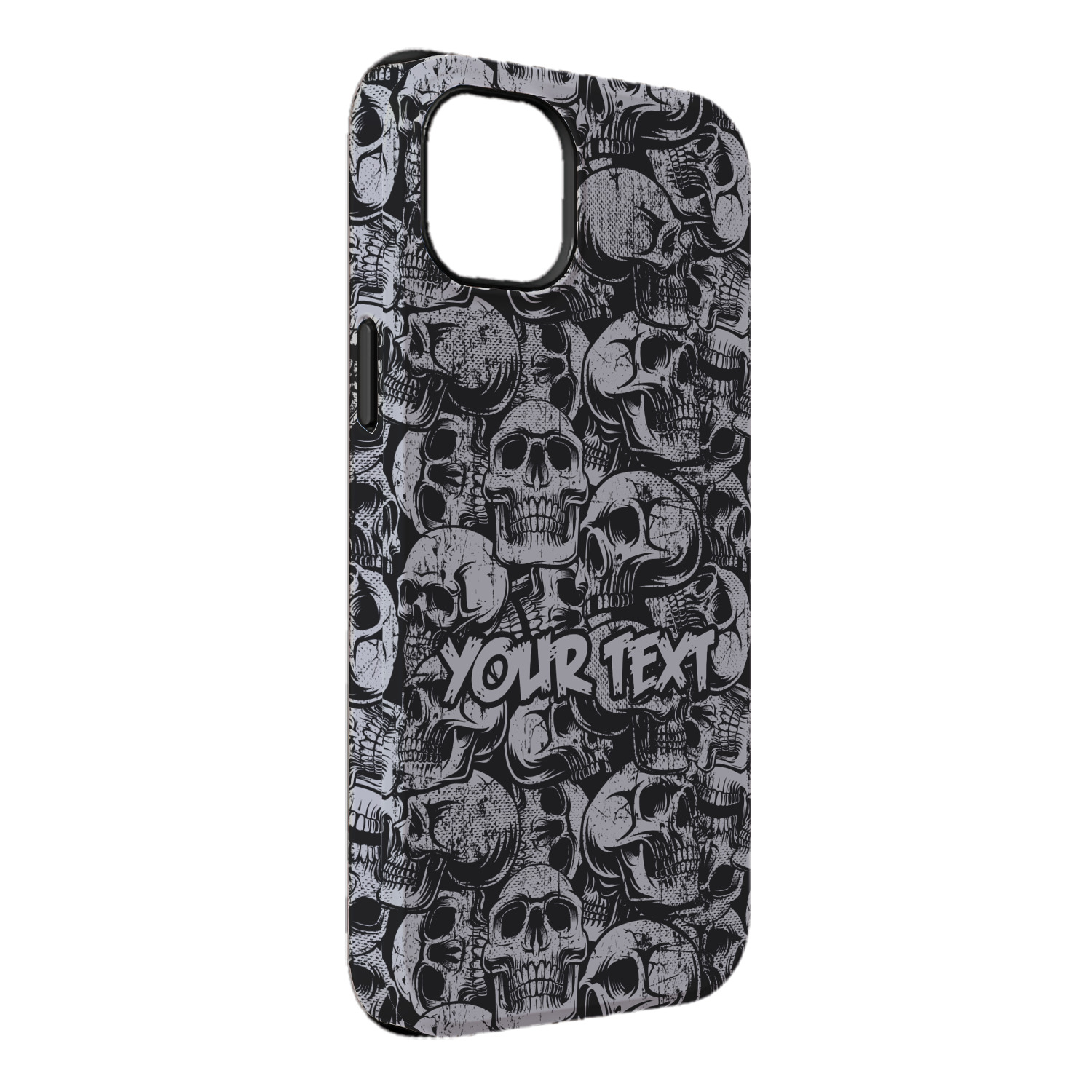 This design has a cool background with skulls facing every which way. They are all grey and black. You are able to personalize you design with the text that is placed at the bottom of the design. This really is the perfect design for your hardcore man!