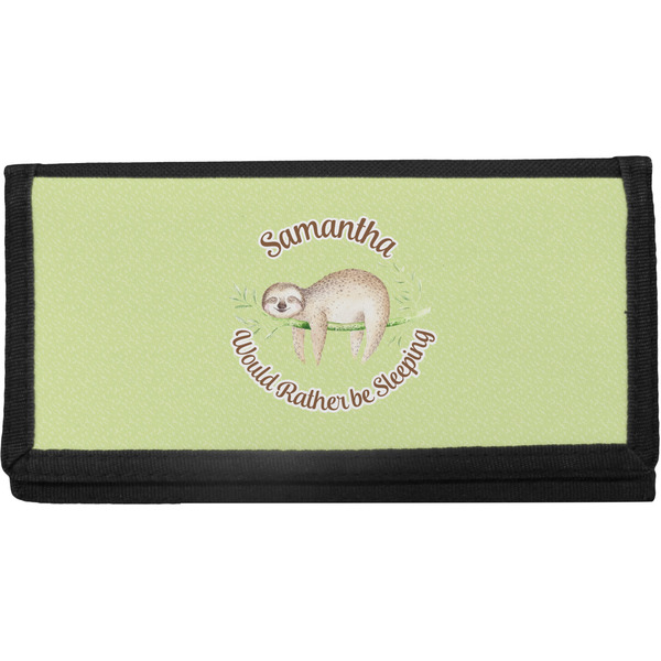 The checkbook cover is made of a durable canvas and the front flap is decorated with a vibrant design of your choosing. With 4 slots for credit cards or IDs, and 2 compartments for your checkbook register, cash, receipts, business cards, and more; this checkbook cover could easily double as a wallet.